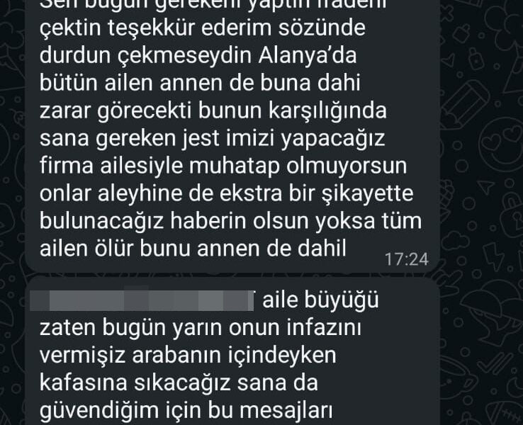 Bugün adliyeye gelen Ertürk, duruşma öncesinde şikayetini geri alması yönünde kendisine ve ailesine yönelik tehdit mesajı aldığını, bu nedenle duruşmada şikayetçi olmadığını söylediğini belirterek, cep telefonu mesajını gönderenler hakkında savcılığa suç duyurusunda bulundu. Tamer Ertürk, “Cinayetin işlendiği firmanın sahibiyim. Duruşma öncesi bir yurt dışı numarasından, sanıktan şikayetçi olmamam gerektiği yönünde kendim ve ailemle ilgili tehdit mesajı aldım. ‘Hayrettin Sumbat’tan korkmamam gerektiği, onunla ilgili infazın yapılacağını belirttiler. Bu nedenle mahkemede tereddüt ettim ve şikayetimden vazgeçtim. Duruşma sonrasında aynı numaradan teşekkür mesajı geldi. Ancak şu an bununla ilgili suç duyurusunda bulundum” dedi.