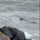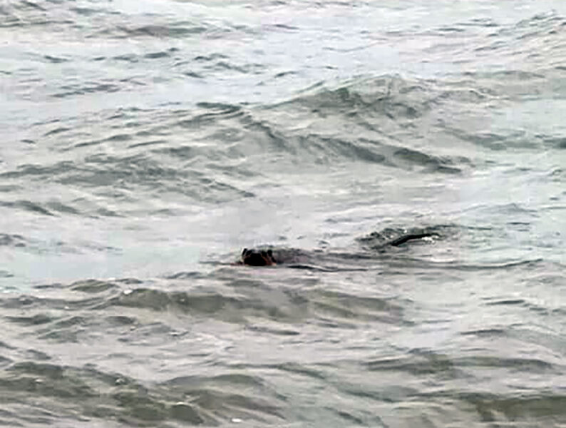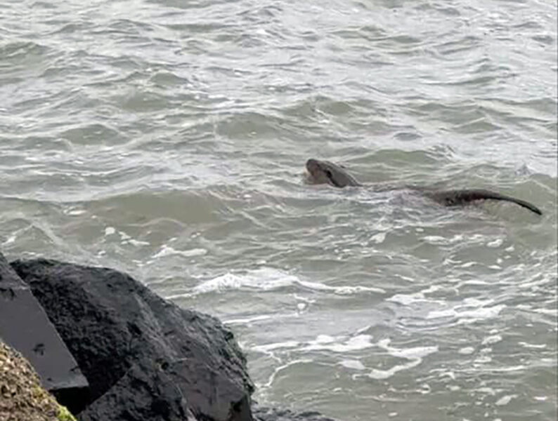 Tekirdağın Süleymanpaşa ilçesi Beyazköy mevkisindeki sahilde yürüyüş yapan kişi, kıyıya yakın bir noktada yüzen su samurunu fark ederek, cep telefonuyla kaydetti. Su samuru bir süre denizde ilerledikten sonra gözden kayboldu.