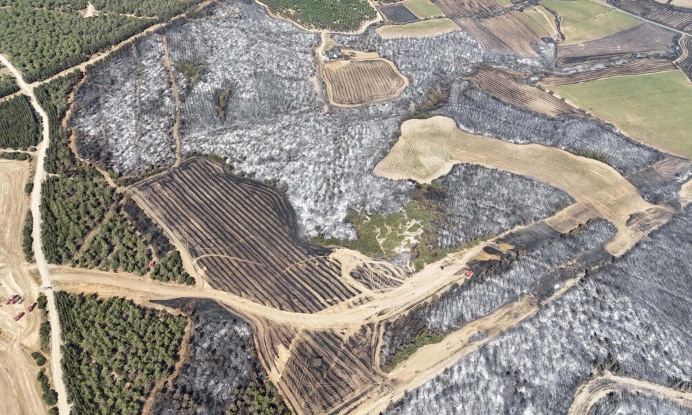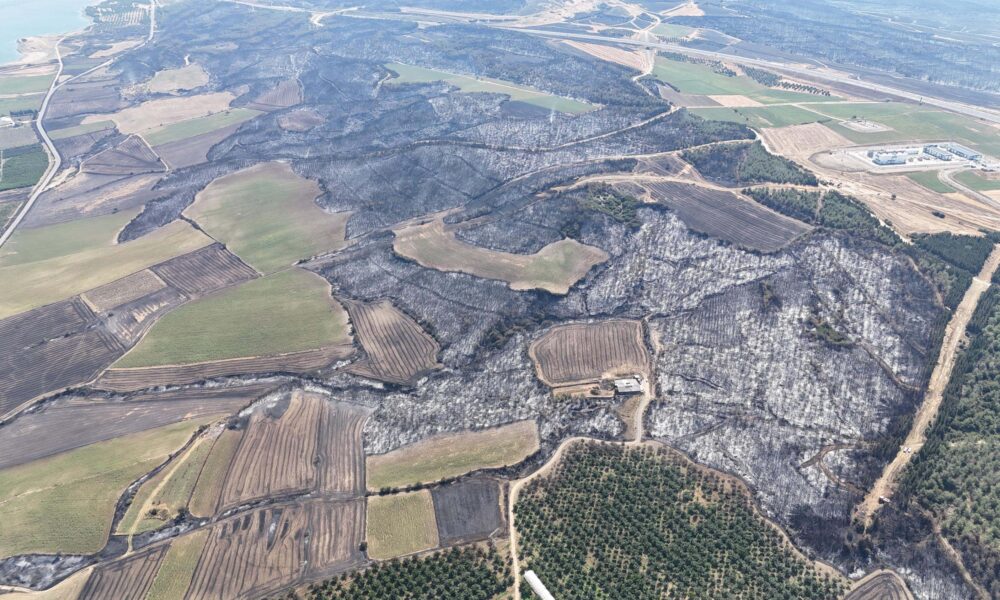 Tekirdağ yangınında Çanakkale’de zarar gören alanlar dron ile görüntülendi