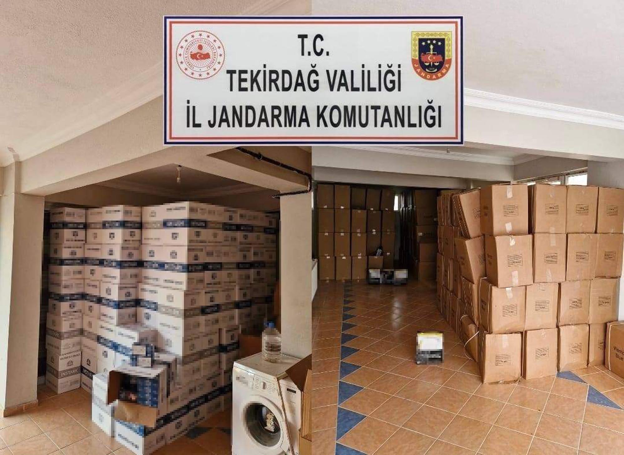 Tekirdağ İl Jandarma Komutanlığı ekipleri, Çerkezköy ilçesinde toptan ve perakende tütün ürünleri satışı yapan A.K.nin Kapaklı ilçesine bağlı Vatan Mahallesinde kiraladığı depoda kaçak tütün ürünleri bulunduğunu belirledi. Depoda arama yapan jandarma, piyasa sürülmesi yasaklanan birer kiloluk paketlenmiş halde 3 ton kıyılmış tütün ve 1 milyon 600 bin boş makaron ele geçirildi. Piyasa değeri 3 milyon TL olduğu belirtilen ürünlerle ilgili A.K., hakkında yasal işlem başlatıldı.