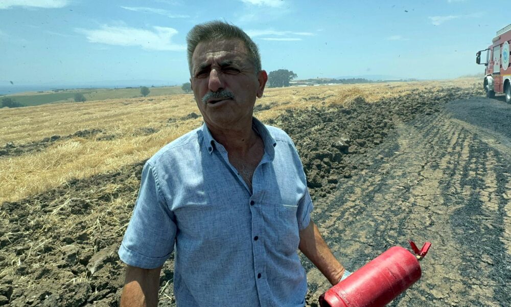 Mahallede oturan Birol Ünal, alevleri görünce arkadaşlarıyla birlikte traktörle bölgeye geldiğini belirtti. Yangın söndürme tüpüyle müdahale eden Ünal, “Alevlere müdahale ettik. Yangın çiftliğin oraya geldi. Ben de yangın tüpüyle geldim kıvılcımlar uçuyor ya onlara müdahale etmek için sıkıyorum” dedi.