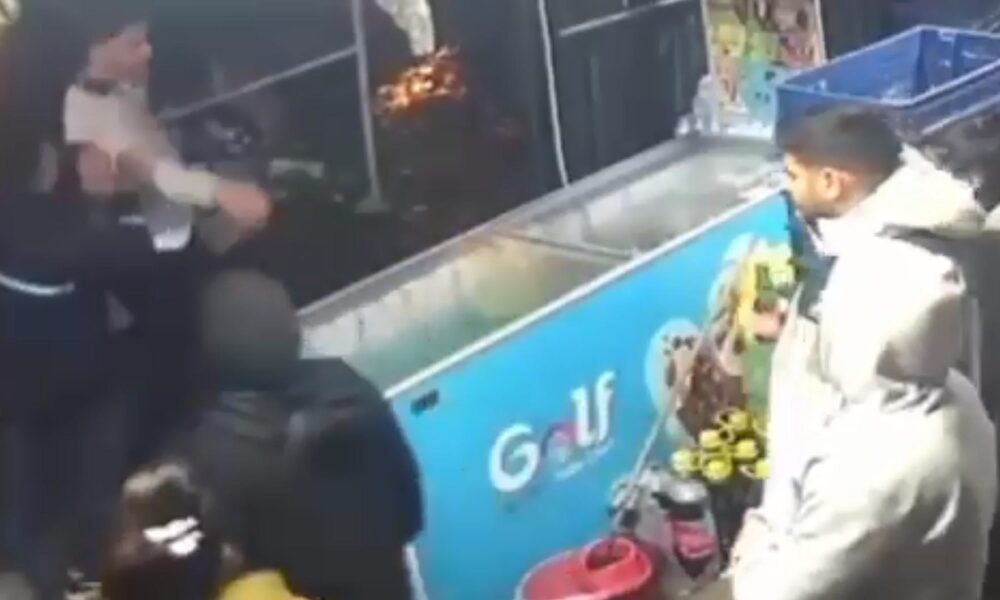 Kavga anı ise iş yerinin güvenlik kamerasına yansıdı.