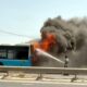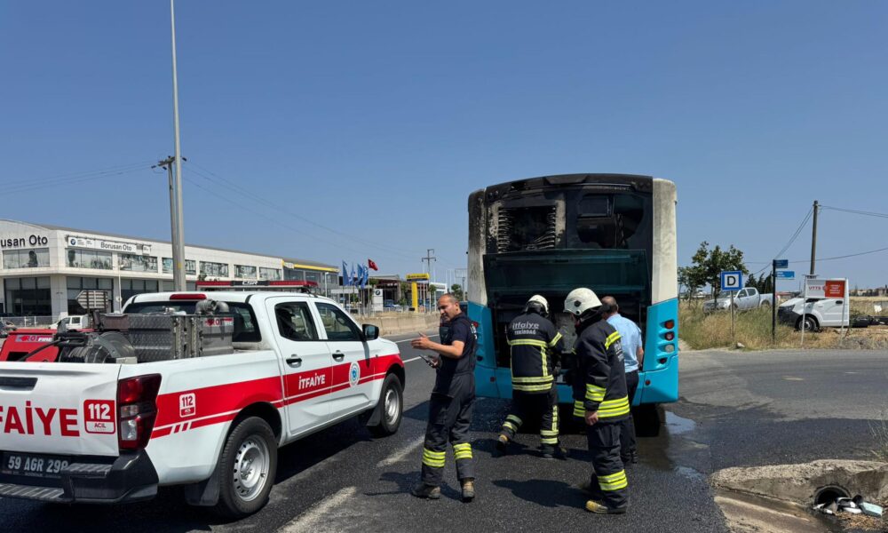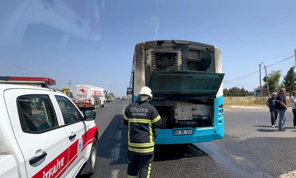 Tekirdağ Büyükşehir Belediyesine ait, Servet S.nin kullandığı 59 DM 914 plakalı otobüs, Çorlu-İstanbul kara yolu yüksekokul mevkisinde motor kısmından alev aldı. Şoför, otobüsü kenara çekip kapılarını açarak, yolcuları indirdi. Otobüs, şoförün ihbarıyla bölgeye sevk edildi. O sırada bölgede çiçekleri sulayan Çorlu Belediyesi Park ve Bahçeler Müdürlüğüne ait araç, yangına müdahale eti. İtfaiye ekipleri de otobüste inceleme yaparken, yangına dair inceleme sürüyor.