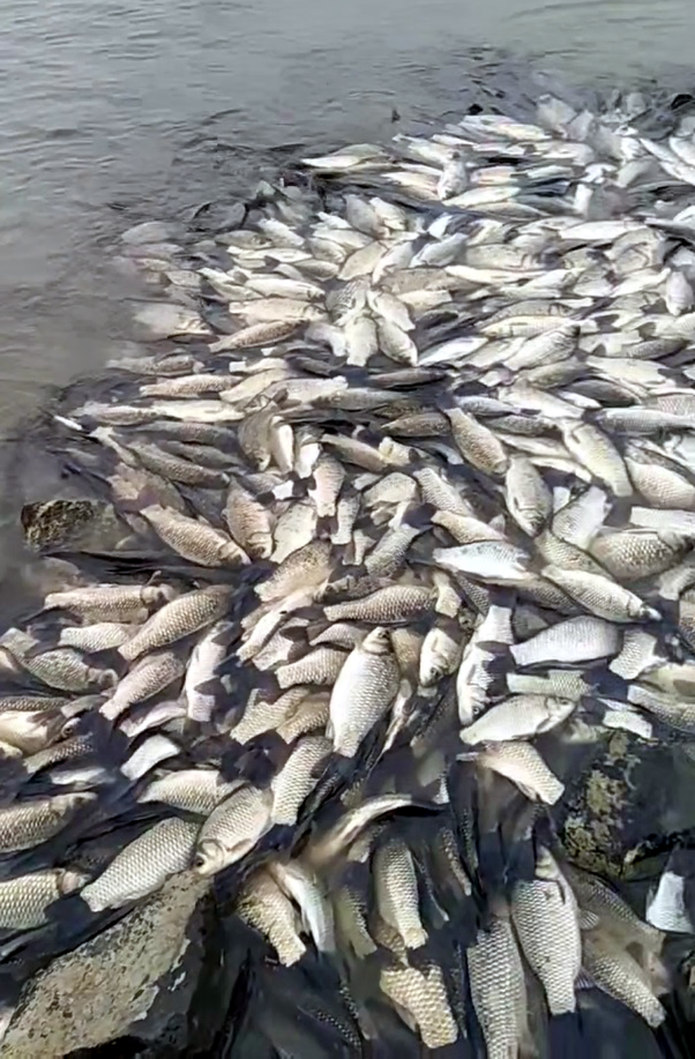 • Tekirdağ'ın Hayrabolu ilçesinde Temrezli Göleti’nde, balık ölümleri yaşandı. Ölümler üzerine İl Tarım ve Orman Müdürlüğü’ne bağlı ekipler, gölden sudan numune alarak inceleme başlattı. Fotoğraf: Tekirdağ, (DHA)