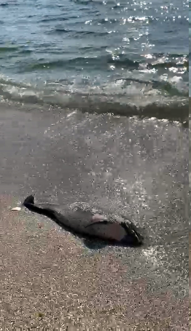 • Tekirdağ'ın Süleymanpaşa ilçesi sahilinde kıyıya vurmuş ölü yunus bulundu. Fotoğraf: Tekirdağ, (DHA)