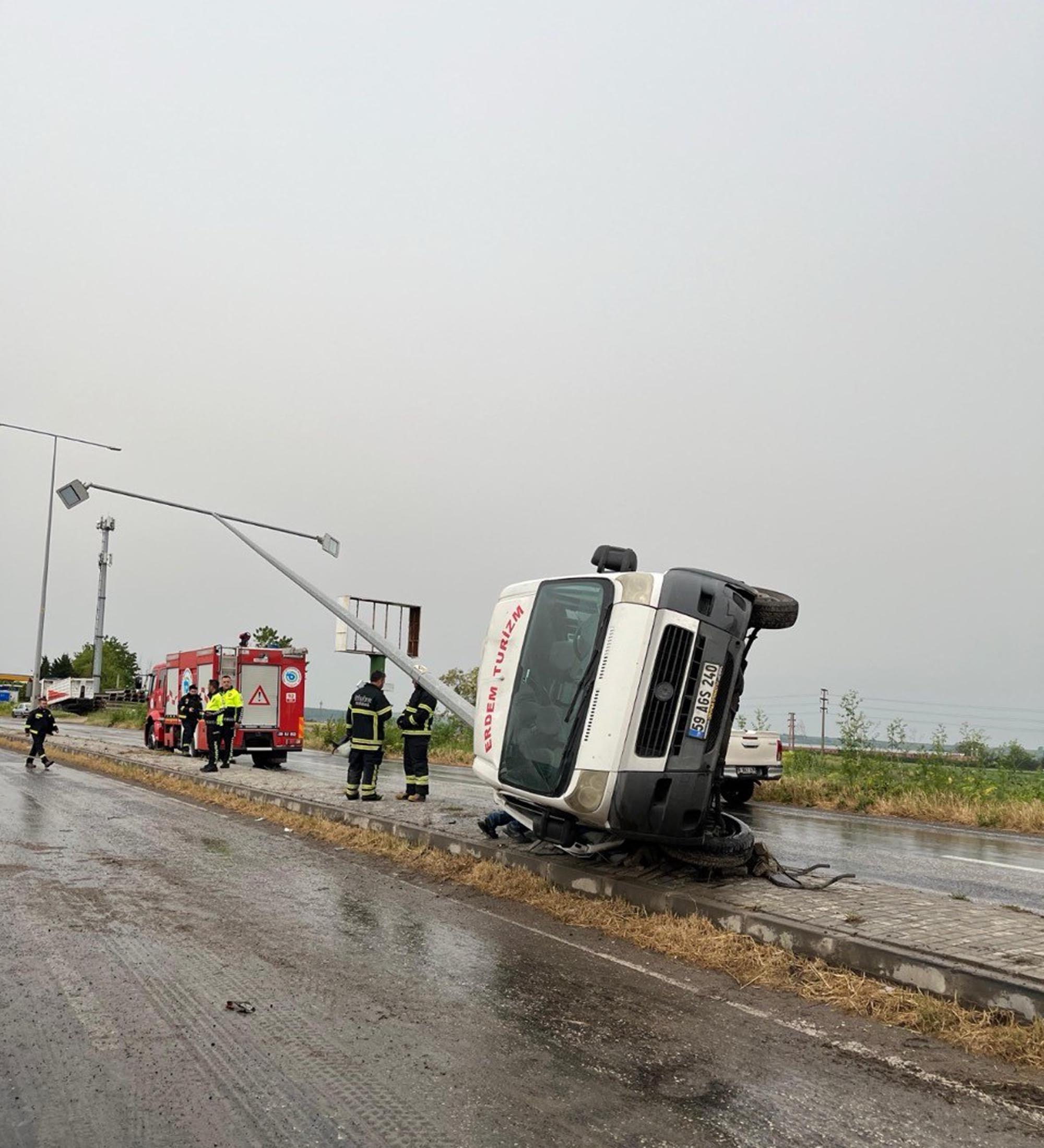 Tekirdağ’da lastiği patlayan servis minibüsü devrildi: 7 yaralı