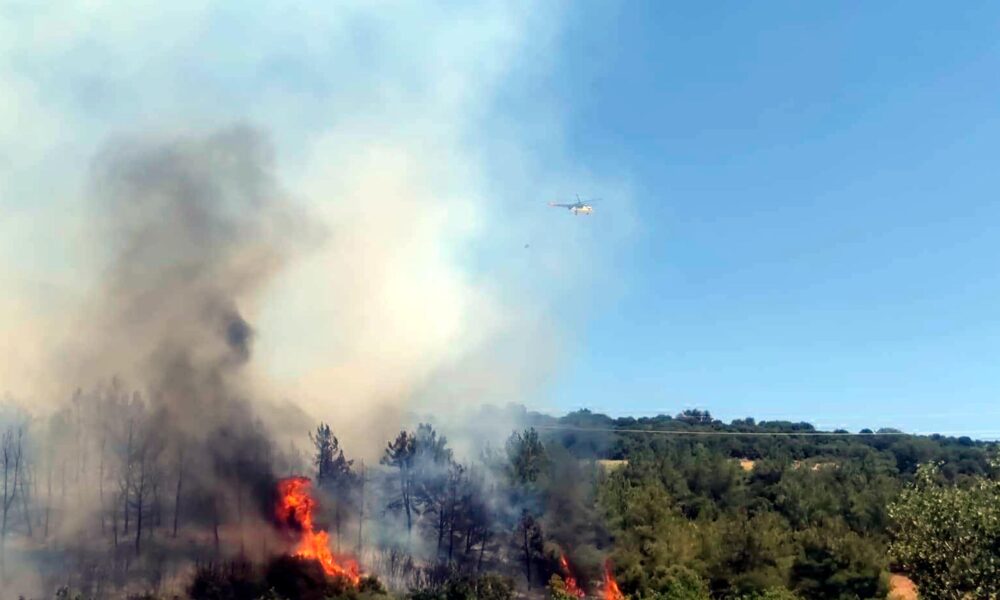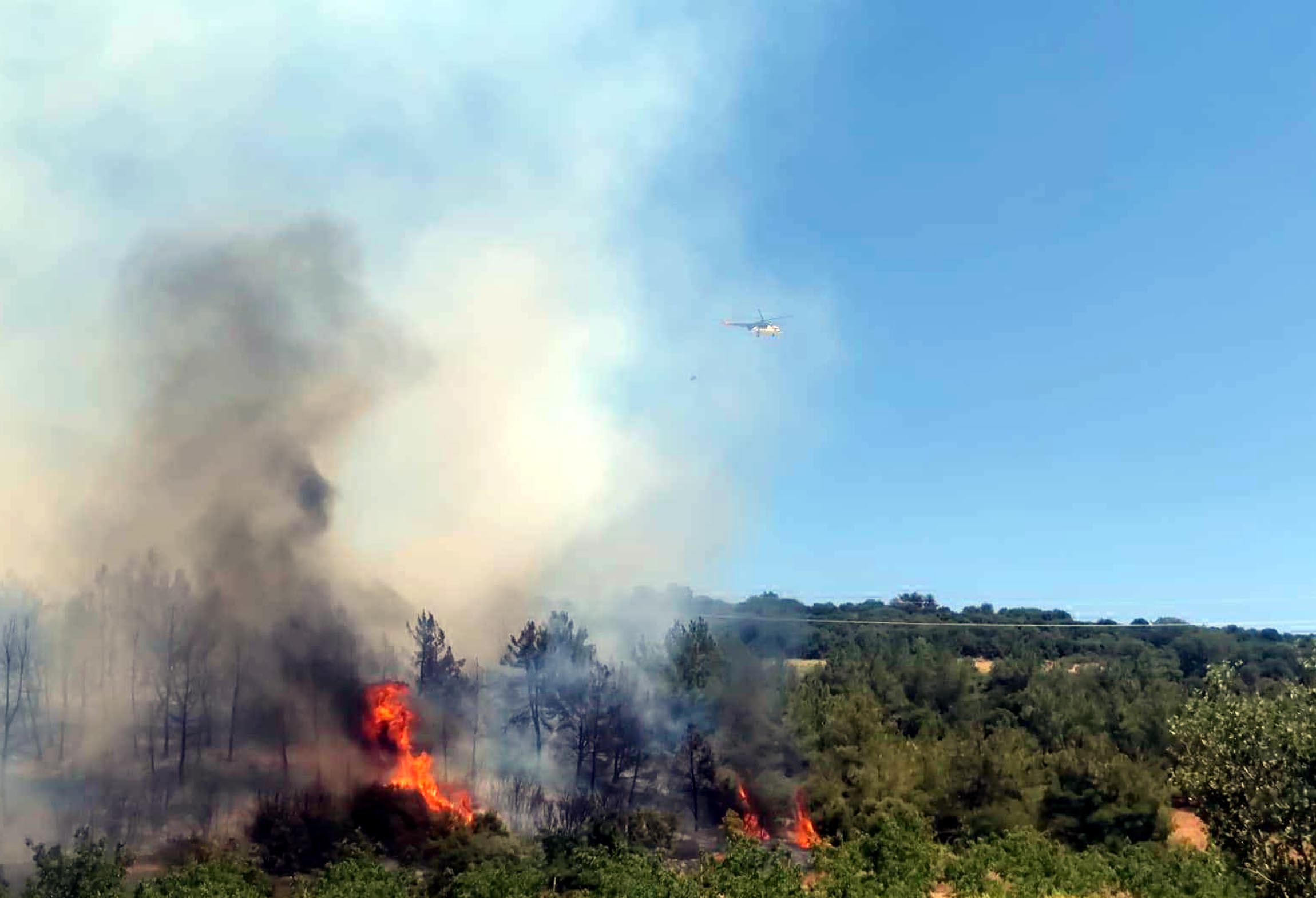 • Tekirdağ'ın Şarköy ilçesinde çıkan anız yangını ormana sıçradı. İtfaiye ekipleri yangına havadan ve karadan müdahale ediyor. Fotoğraf: Nuri ÇAĞLAR/Tekirdağ, (DHA)