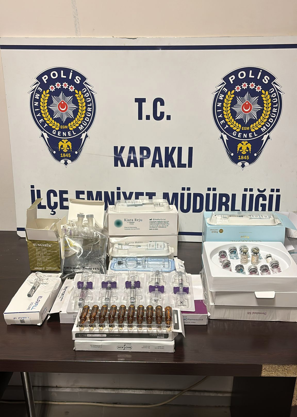 İlçe Emniyet Müdürlüğü ekipleri, S.A. adlı kadının Kapaklı ilçesi Atatürk Mahallesi Mert Sokak’taki evinde yetkisi olmadığı halde botoks, dolgu ve estetik operasyonlar yaptığını belirledi. Polis, eve düzenlediği baskınla S.A.’yı gözaltına aldı. Evde yapılan aramada estetik operasyonlarda kullanılan içinde sıvı bulunan 22 cam tüp, içinde sıvı bulunan 21 şırınga, içinde sıvı bulunan 14 ampul, 110 enjeksiyon iğnesi ucu ve 1 serum ele geçirildi.