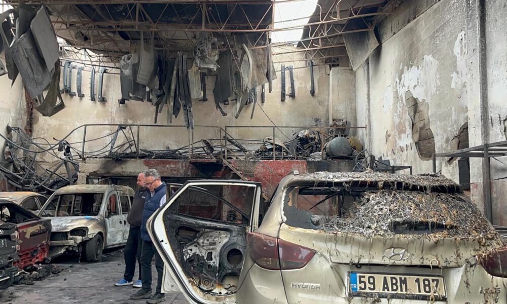 Tekirdağ’da tamirhane yangını; 6 otomobil kullanılamaz hale geldi