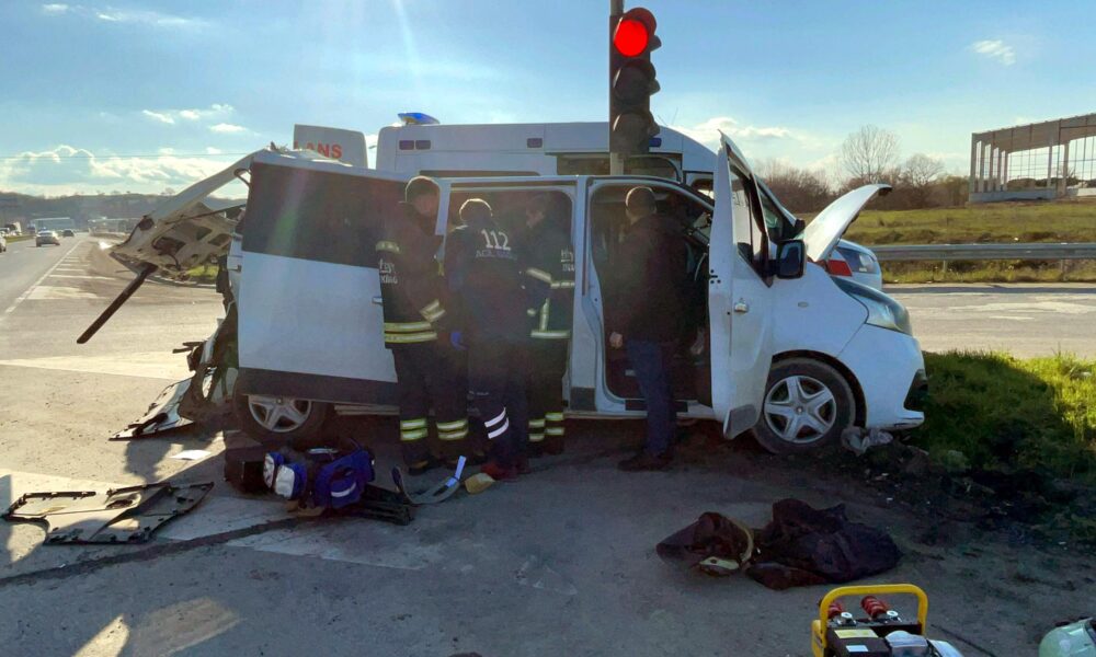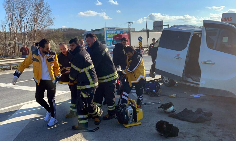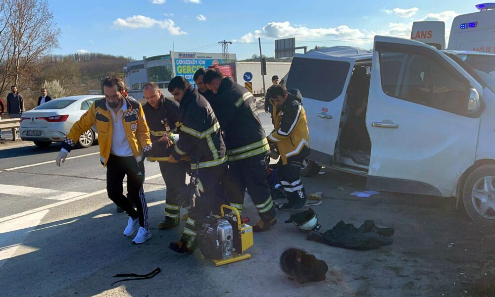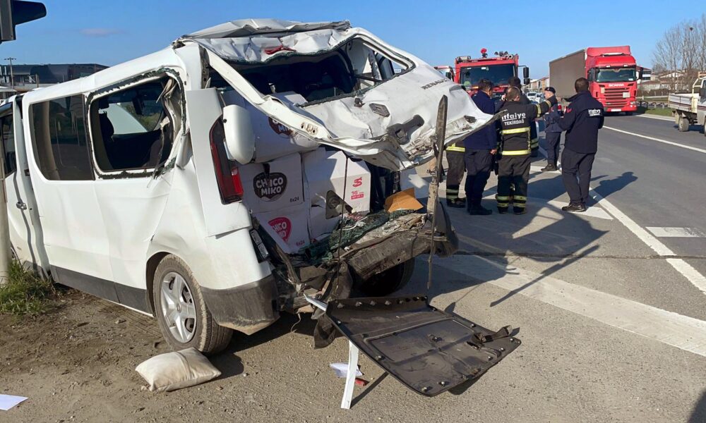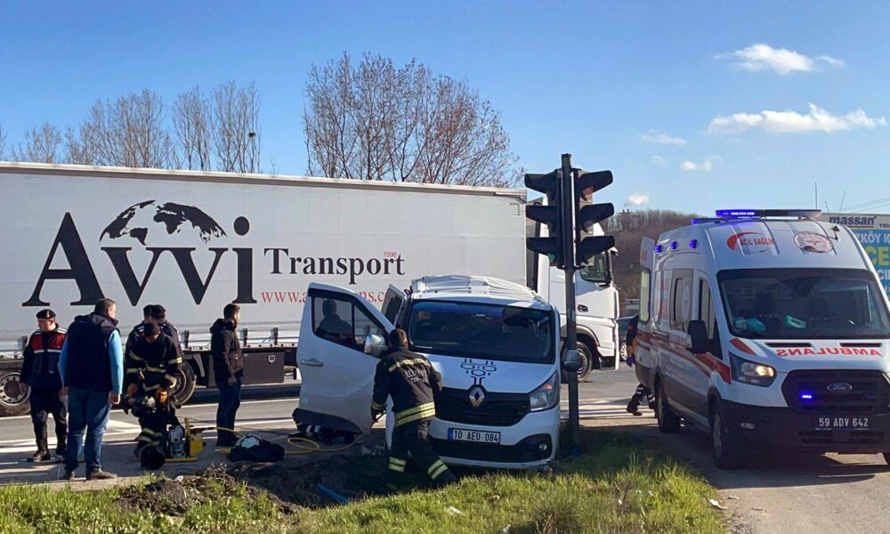 Tekirdağ’da TIR’ın, ışıkta bekleyen minibüse çarptığı kazada 5 kişi yaralandı