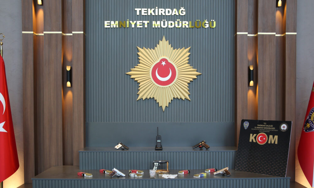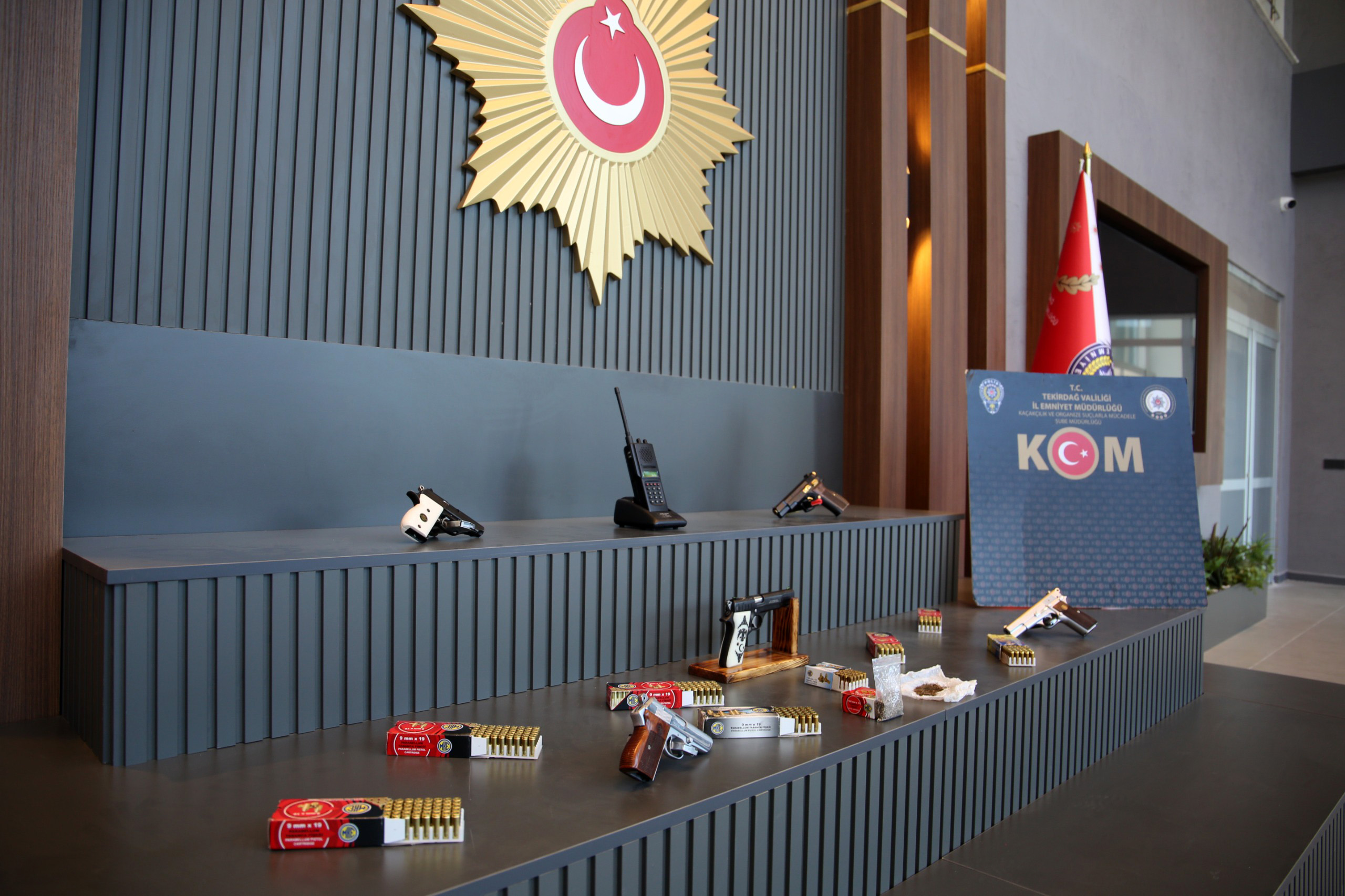İl Emniyet Müdürlüğü Kaçakçılık ve Organize Suçlarla Mücadele Şube Müdürlüğü ekipleri, Tekirdağ Cumhuriyet Başsavcılığı koordinesinde yasa dışı silah ve mühimmat ticaretine yönelik operasyon düzenledi. Belirlenen adreslerde yapılan aramalarda 5 ruhsatsız tabanca, 477 tabanca mermisi, 1 telsiz, bir miktar uyuşturucu madde ve dijital materyal ele geçirildi. Operasyonda 5 şüpheli gözaltına alındı.