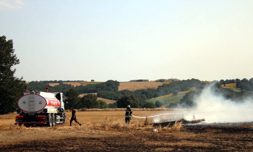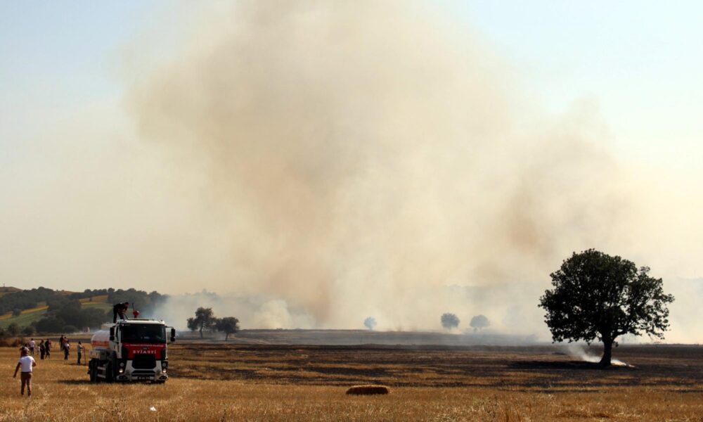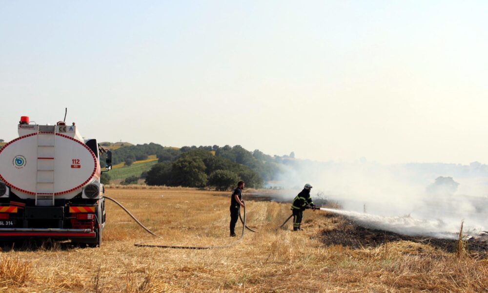 Tekirdağ’daki anız yangını ormana ilerlemeden söndürüldü; 100 dönüm alan zarar gördü