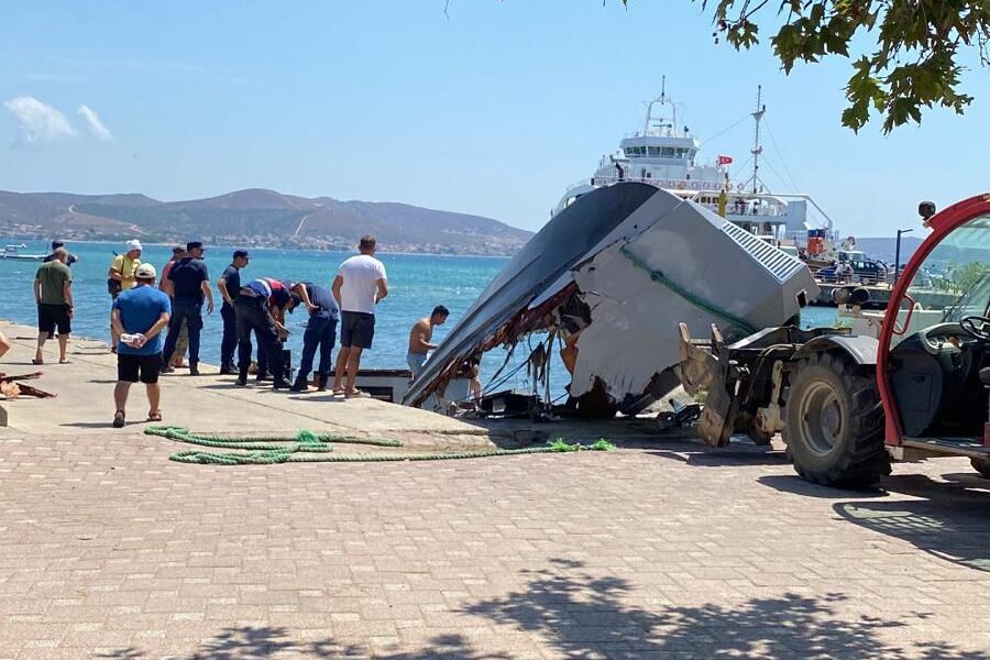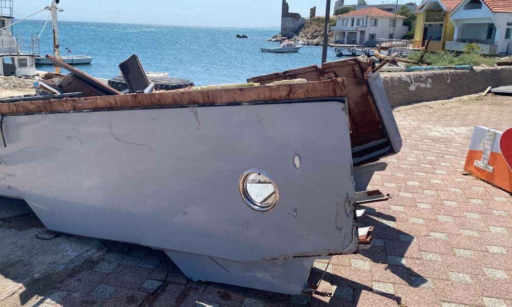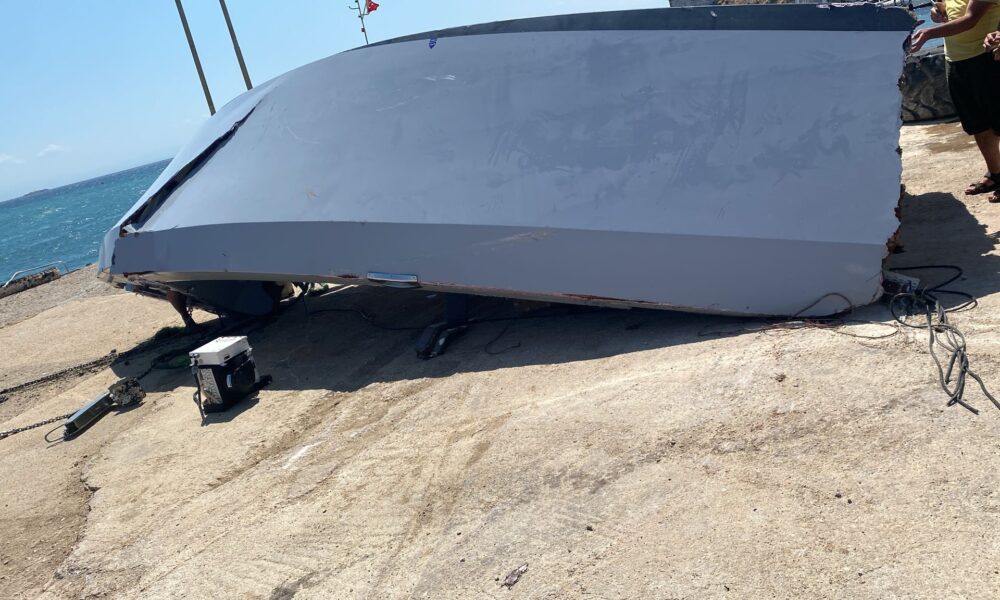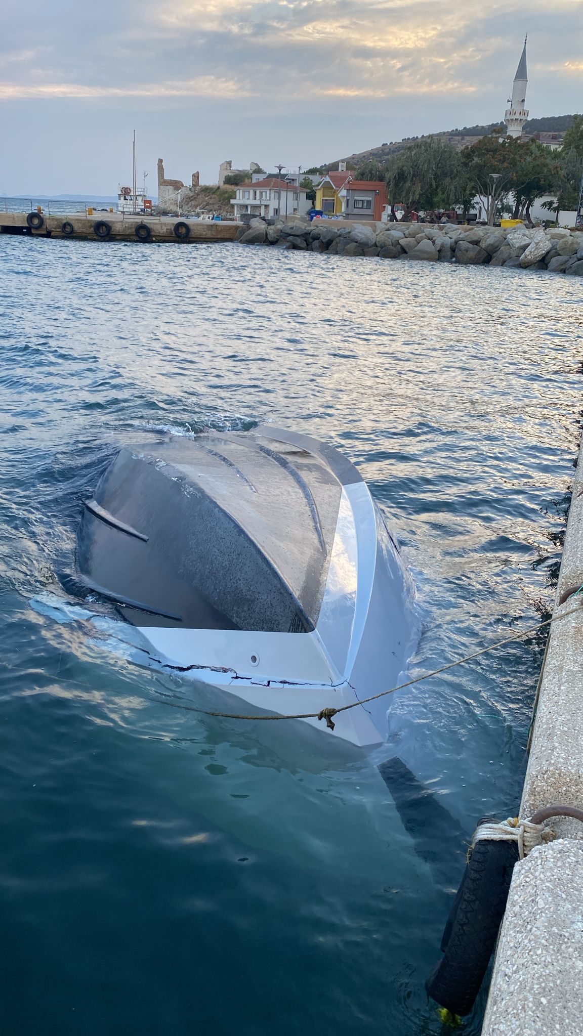 İş insanı Halit Yukay'a (43) ait parçalanmış halde bulunan 'Graywolf' isimli teknede, kazanın nedeninin belirlenmesine yönelik bilirkişi incelemesi başlatılacak. Fotoğraf: Marmara (Balıkesir), (DHA)