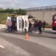 TEM Otoyolu’nda mıcır yüklü kamyon devrildi; şoför yaralandı