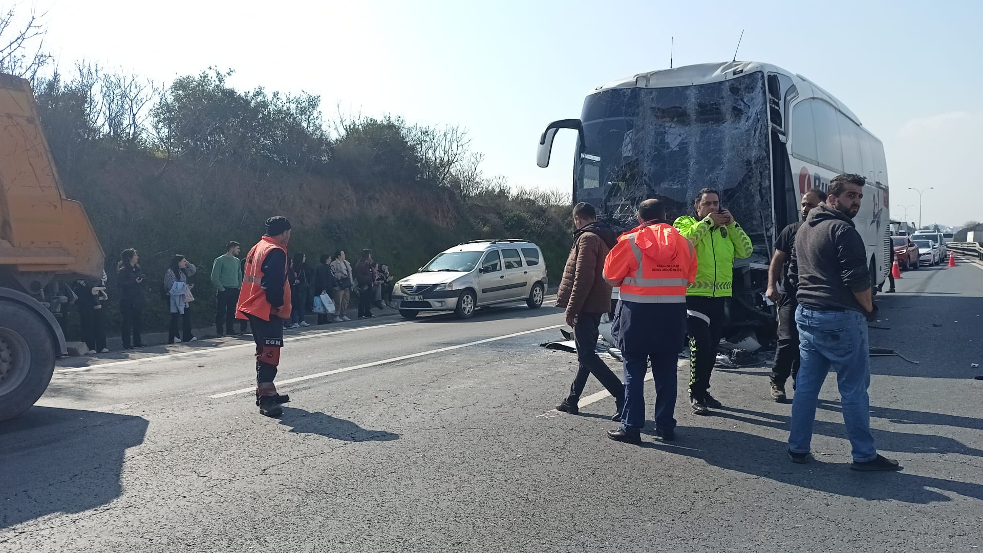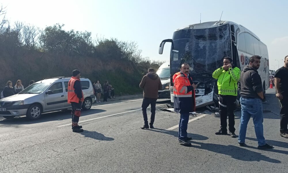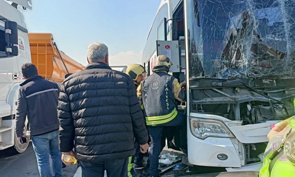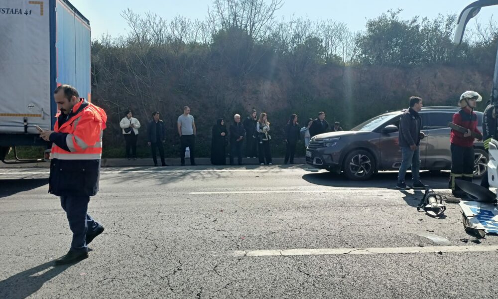 TEM Otoyolu Kocaeli’nin Dilovası ilçesi geçişinde yolcu otobüsü, TIR ve hafif ticari aracın karıştığı zincirleme trafik kazası sebebiyle yolun Ankara istikameti trafiğe kapandı. Kazada yaralananlar için olay yerine çok sayıda sağlık ekibi sevk edildi.Kaza, saat 14.30 sıralarında TEM Otoyolu’nun Kocaeli-Dilovası geçişinde meydana geldi. Ankara istikametinde yolcu otobüsü, hafif ticari araç ve TIR çarpıştı. İhbar üzerine olay yerine 1sağlık ve polis ekipleri sevk edildi. Sağlık ekipleri, yaralılara ilk müdahalede bulundu. Yaralılardan bazıları, ambulanslarla çevredeki hastanelere kaldırılarak tedaviye alındı. Ekiplerin olay yerinde çalışmaları sürerken, kaza nedeniyle TEM’in Ankara istikameti ulaşıma kapandı. Yolu açmak ve yaralıları hastaneye ulaştırmak için çalışmalar sürüyor.