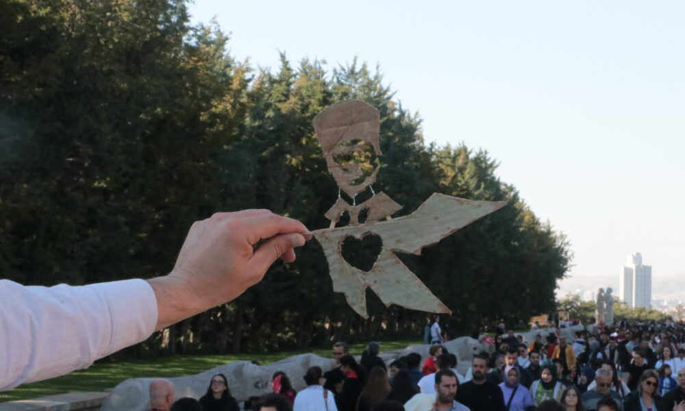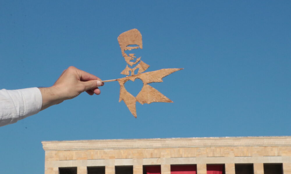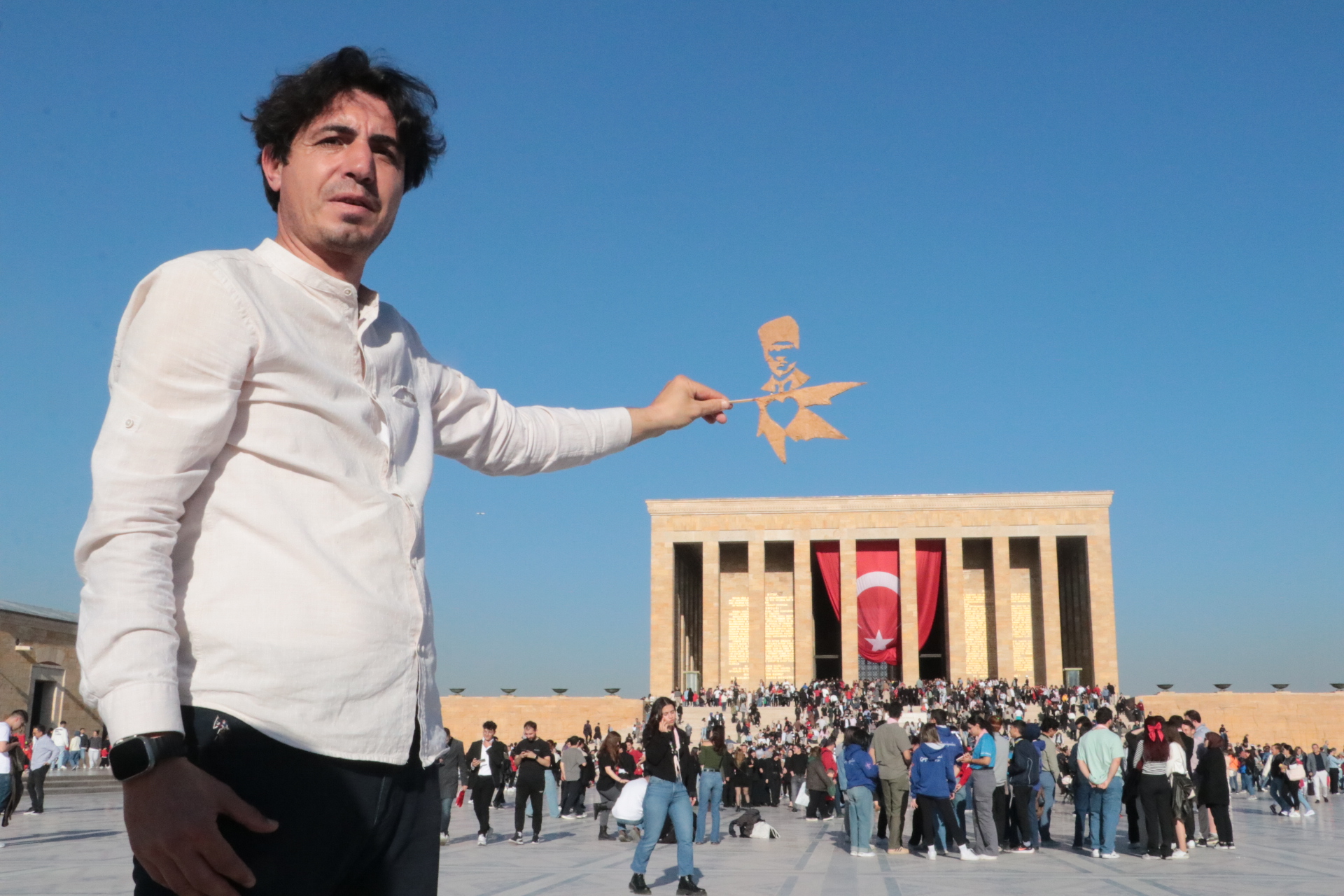 “Çankaya Belediyesi Park ve Bahçeler Müdürlüğünde görev yapıyorum. Sonbaharda düşen yapraklar ilgimi çekmişti. Yaprak sanatları ile uğraşmaya başladım. Daha önce iki tane sergi açtım. Birisi Kuğulu Parkta diğeri de Ankara Büyükşehir Belediyesi Kızılay Metro Sanat Merkezindeydi. Ardından dünyada bir ilk olsun diye yaprak üzerine dünya lideri Mustafa Kemal Atatürk’ün portre resmini çizdim ve bu şekilde kendimi geliştirerek ilerlettim. Pek çok fotoğraf çektim. Çektiğim fotoğraflar, yaptığım çalışmalar, sosyal medyada ve birçok yerde sergilendi. Bugün de çok anlamlı bir yerdeyiz. Anıtkabir‘den topladığım yapraklarla dünya lideri Mustafa Kemal Atatürk’ün silüetini portre olarak işledim. Yaprak şu an Ata’mızın huzurunda. Malum olan sevgimiz, tutkumuz, Selanik’te açılan bir çift gözle başladı. Mustafa Kemal Atatürk’ün yakmış olduğu ışık asla ve asla sönmeyecek. Yaşasın Cumhuriyet, yaşasın Mustafa Kemal Atatürk. Bu vesileyle tüm Türkiye’nin 29 Ekim Cumhuriyet Bayramı’nı kutluyorum.”