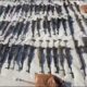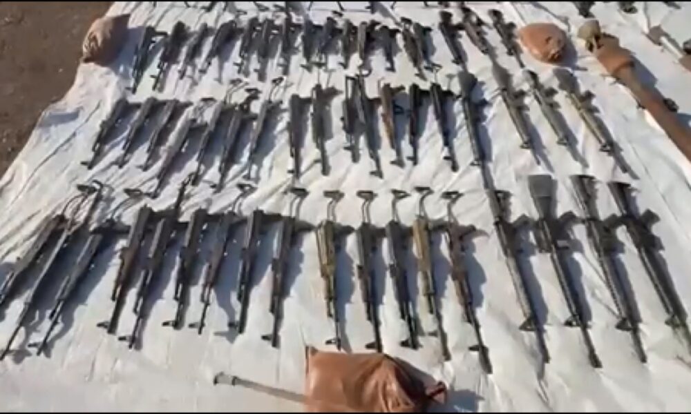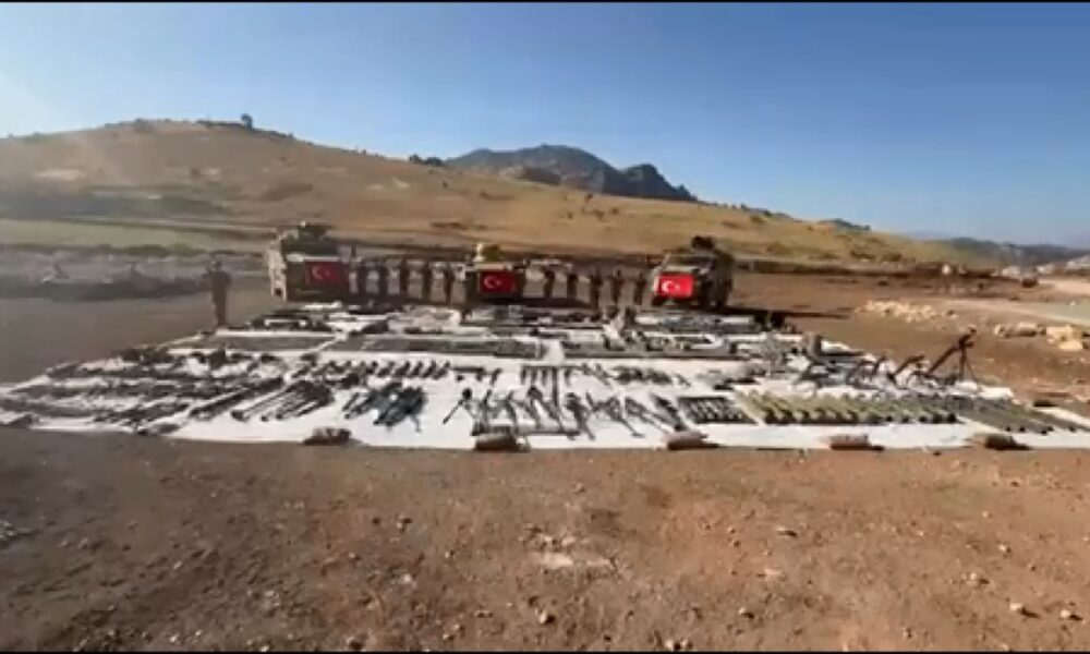 “53 adet AK-47 ve M16A4 piyade tüfeği, 1 adet geri tepmesiz top, 5 adet Doçka uçaksavar, 9 adet keskin nişancı tüfeği ve 29 adet bastırıcı, 1 adet M79 tanksavar silahı ve 6 adet mühimmatı, 1 adet LAW, 7 adet tel güdümlü Konkurs tanksavar silahı, 5 adet AT-4 tanksavar silahı, 6 adet SA-7 hava savunma füzesi, 1 adet 82 mm havan ve 14 adet mühimmatı, 3 adet 60 mm havan ve 9 adet mühimmatı, 2 adet 107 mm katyuşa silahı ve 7 adet mühimmatı, 3 adet 40 mm 6’lı bombaatar ve 66 adet mühimmatı, 2 adet tekli bombaatar, 1 adet M1 keskin nişancı tüfeği, 6 adet Dragunov keskin nişancı tüfeği ve 46 adet şarjör, 2 adet av tüfeği ve 31 adet mühimmatı, 1 adet uzi makinalı tabanca, 10 adet RPG-7 roketatar, 5 adet 7.62 mm PKMS makinalı tüfek ve 4 adet yedek namlusu, 302 adet şarjör, 54 adet antipersonel ve 67 adet antitank roket mühimmatı, 127 adet sevk fişeği, 10 bin 500 adet Doçka uçaksavar ve hafif silah mühimmatı, 26 adet taarruz tipi ve 29 adet savunma tipi el bombası, 43 adet sis el bombası, 77 adet antipersonel mayını, 100 kilo el yapımı patlayıcı, pil blokları ve güç üniteleri, 2 adet teleskop, 17 adet silah üstü optik nişangah, 8 adet silah üstü termal ve 3 adet silah üstü gece görüş dürbünü, 5 adet lazer mesafe ölçer, 1 adet GPS, 6 adet araç telsizi ve antenleri, 33 adet el telsizi, 6 adet ses kayıt cihazı, 1 adet DJI mavic 3T dron, 2 adet kullanılamaz durumda DJI Phantom 4 dron, 3 takım maket uçak kanadı, 3 adet fotoğraf makinası, 1 adet kamera ve 9 adet tripod, 7 adet fastlink, 1 adet projeksiyon cihazı, 10 adet modem, 6 adet farklı cins ve ebatta medya anteni, 2 adet termal PTZ kamera, 3 adet Dome PTZ kamera, 4 Adet IP kamera, 11 adet farklı cinslerde çubuk kamera, 4 adet dikiz aynası özelliği olan izleme ünitesi, 4 adet kamera sistemlerinde kullanılan kayıt cihazı, 5 adet mikrofon sistemi, 3 adet mikrofon, 2 adet kulaklık, 3 adet hoparlör, 5 adet elektrik üretme maksadıyla kullanılan el dinamosu, 14 adet telefon ve 4 adet santral, 4 adet yazıcı, 5 adet güç kaynağı, 4 adet monitör, 3 adet klavye, 39 adet termal şemsiye, 11 adet kar şemsiyesi ve muhtelif yaşam malzemesi.”