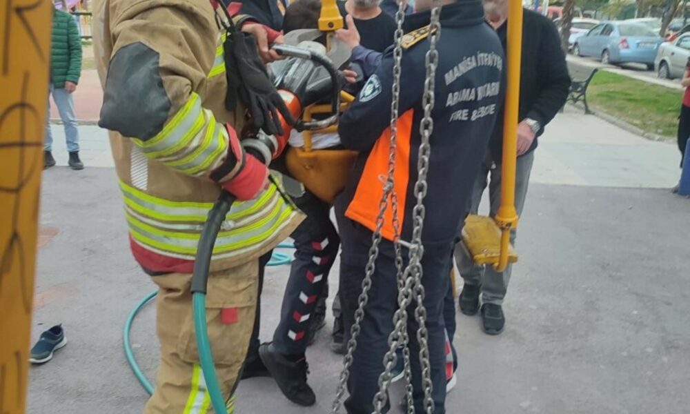 Olay, saat 18.00 sıralarında Yunusemre ilçesi Ayni Ali Mahallesindeki Ahmet Yurdaşan Parkında meydana geldi. Anne- bebek salıncağının bebek bölümüne ters oturan 7 yaşındaki Şafak K.Ç., burada sıkıştı. İhbar üzerine bölgeye sevk edilen itfaiye ekipleri, kurtarma çalışması başlattı. Manisa Büyükşehir Belediyesi İtfaiye Dairesi Başkanı Gürhan İnalın yönettiği operasyonda, salıncak kesilerek çocuk sıkıştığı yerden kurtarıldı. Şafak K.Ç., kontrol amacıyla hastaneye sevk edildi.