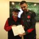 Sancar da Hacıosmanoğlu, Ayaz ve millî futbolcularımıza hayat hikâyesini anlatan imzalı kitaplardan hediye etti.