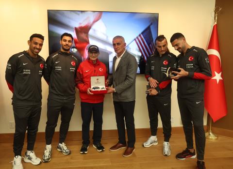 Chapel Hilldeki Sancar Kültür Merkezinde gerçekleşen ziyarette Hacısomanoğluna T.C. Miami Başkonsolosu Resul Şahinol, TFF Genel Sekreteri Abdullah Ayaz, Dış İlişkiler ve Millî Takımlar İdari Direktörü Buğra İmamoğulları, A ve U21 Millî Takım İdari Müdürü Mert Tuncay ile A Millî Takım oyuncularımız Kaan Ayhan, Çağlar Söyüncü, Merih Demiral ve İrfan Can Kahveci de eşlik etti.