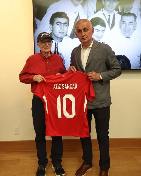 TFF Başkanı Hacıosmanoğlu ve A Milli Takım oyuncularından Aziz Sancar’a ziyaret