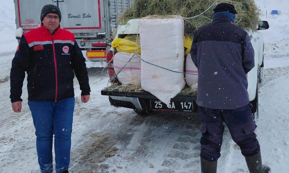 Çat ilçesi kırsal Çirişli Mahallesi sınırları içerisinde yer alan Çirişli geçidinde, olumsuz hava koşulları nedeniyle büyükbaş hayvan yüklü TIR mahsur kaldı. İlçe Kaymakamlığına ulaşan ihbarın ardından, Çat Tarım Müdürlüğü teknik personeli, olay yerine ulaştı. TIR’da mahsur kalan hayvanların kontrolleri yapılmasının ardından aç kalan hayvanlara çevredeki mahallelerden ot ve saman alındı. Araçlarla TIR’a getirilen ot ve saman hayvanlara verildi.