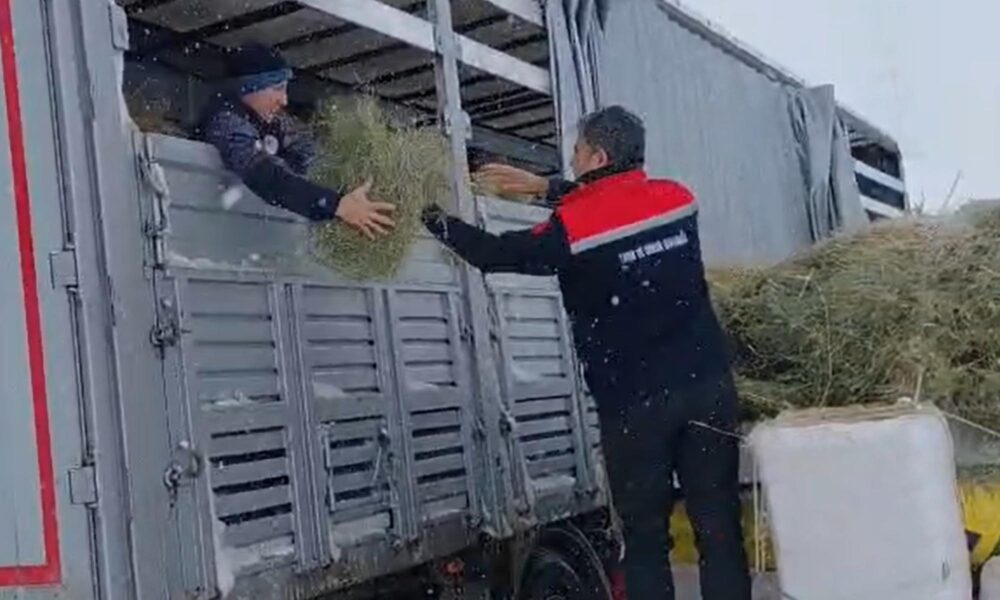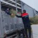 Tipide mahsur kalan TIR’daki hayvanlara saman ve ot götürüldü