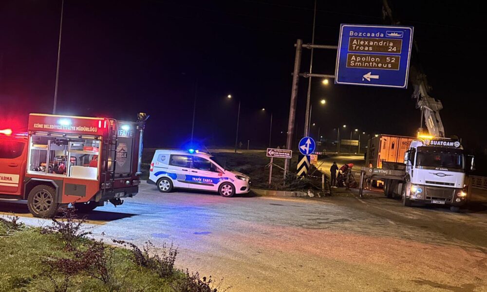 Kaza, saat 03.00 sıralarında, Çanakkale-İzmir kara yolunda Ezine-Geyikli Kavşağında meydana geldi. Ezineden Ayvacık istikametine seyir halinde olan B.Ç.nin yönetimindeki 59 AIL 476 plakalı TIR ile Bozcaada Kavşağı’nda Necdet Özcan yönetimindeki 17 DU 480 plakalı traktöre çarptığı ileri sürüldü. Çevredekiler, durumu polis ve sağlık ekiplerine bildirdi. İhbarla bölgeye sevk edilen sağlık görevlileri Necdet Özcan ve yanındaki eşi Ayşe Özcan’ın yaşamlarını yitirdiğini belirledi. TIRın sürücüsü B.Ç. gözaltına alınırken, kazaya ilişkin soruşturma başlatıldı.