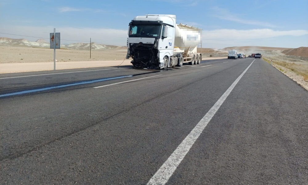 TIR ile çarpışıp alev alan otomobilin sürücüsü öldü