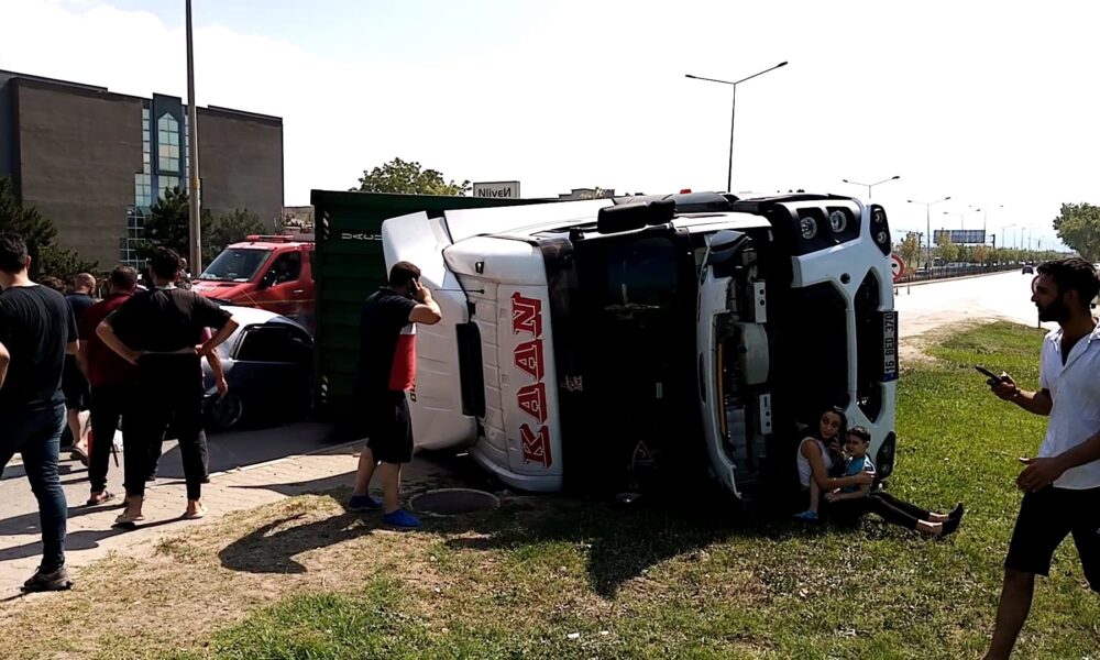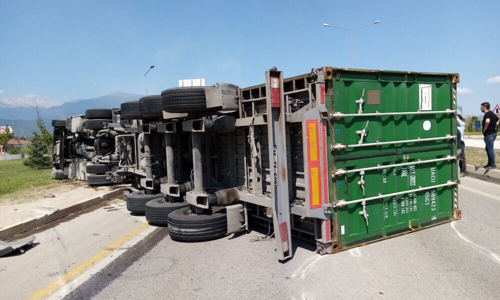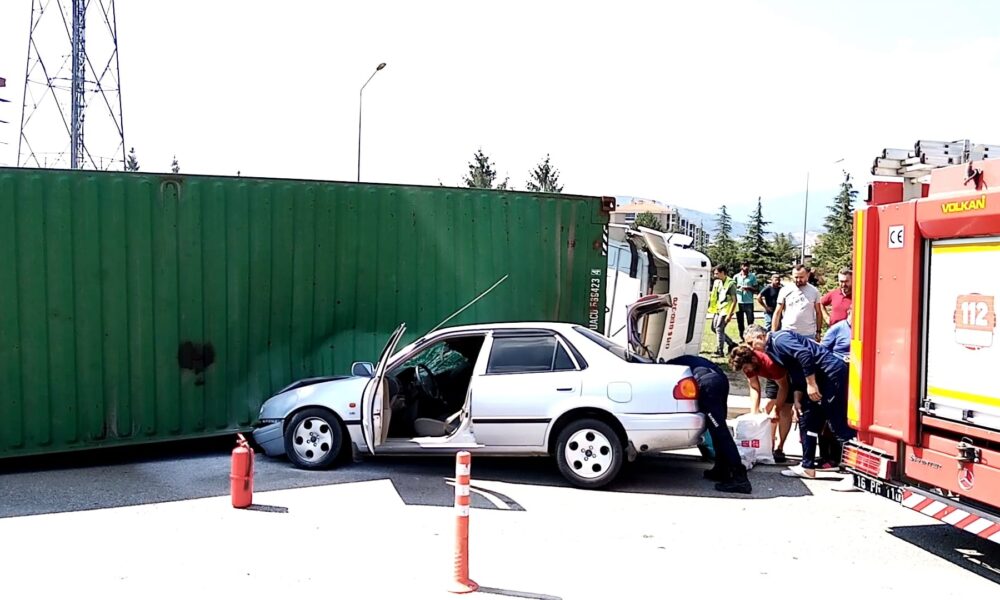 Kaza, saat 10.00 sıralarında Bursa-Ankara kara yolu Hikmet Şahin Köprülü Kavşağında meydana geldi. İnegölden Bursa istikametine 16 BED 370 plakalı TIRla seyir halinde olan Necati K.(40), kavşaktaki yol çalışması nedeniyle şerit değiştirmek istediği sırada direksiyon hakimiyetini kaybetti. Kontrolden çıkan TIRın dorsesi karşı yönden gelen Ferhat A.(30) yönetimindeki 19 AAS 158 plakalı otomobilin üzerine devrildi. Kazada TIR sürücüsünün yanında bulunan 5 yaşındaki oğlu Çınar K. ile otomobilde bulunan Yılmaz A. (61), yaralandı. İhbarla olay yerine polis ve sağlık ekipleri sevk edildi. Yaralılar, sağlık ekiplerinin ilk müdahalesinin ardından ambulanslarla kaldırıldıkları İnegöl Devlet Hastanesinde tedaviye alındı. TIR ile dorsesinin çekici ile kaldırılmasının ardından yolda trafik akışı normale dönerken, kazayla ilgili soruşturma başlatıldı.