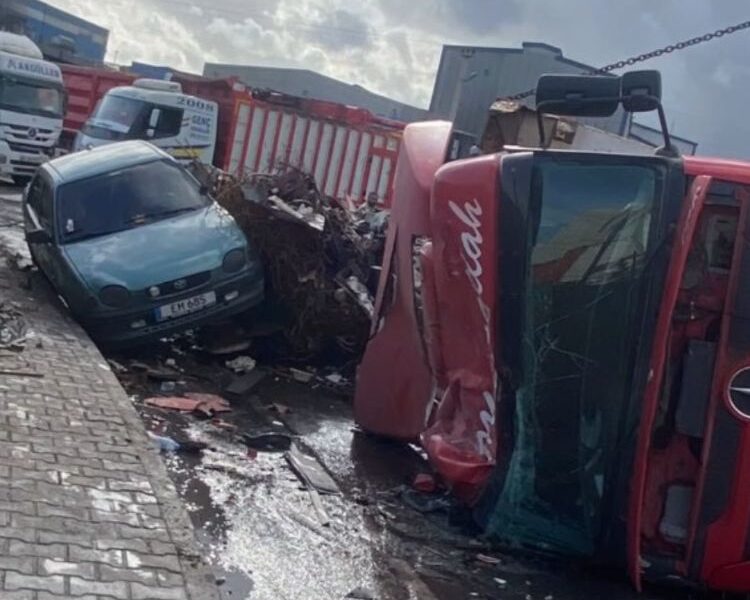 Kaza, dün öğle saatlerinde, Tüysüz beldesi Organize Sanayi Bölgesinde meydana geldi. Sürücüsünün ismi öğrenilemeyen hurda yüklü TIR, kavşakta dönüş yaparken kontrolden çıkıp yol kenarında park halindeki araçların üstüne devrildi. Kazada ölen ya da yaralanan olmazken, 3 araçta ise zarar oluştu. Kaza anı, çevredeki iş yerinin güvenlik kamerasına yansıdı. Kazaya ilişkin inceleme başlatıldı.