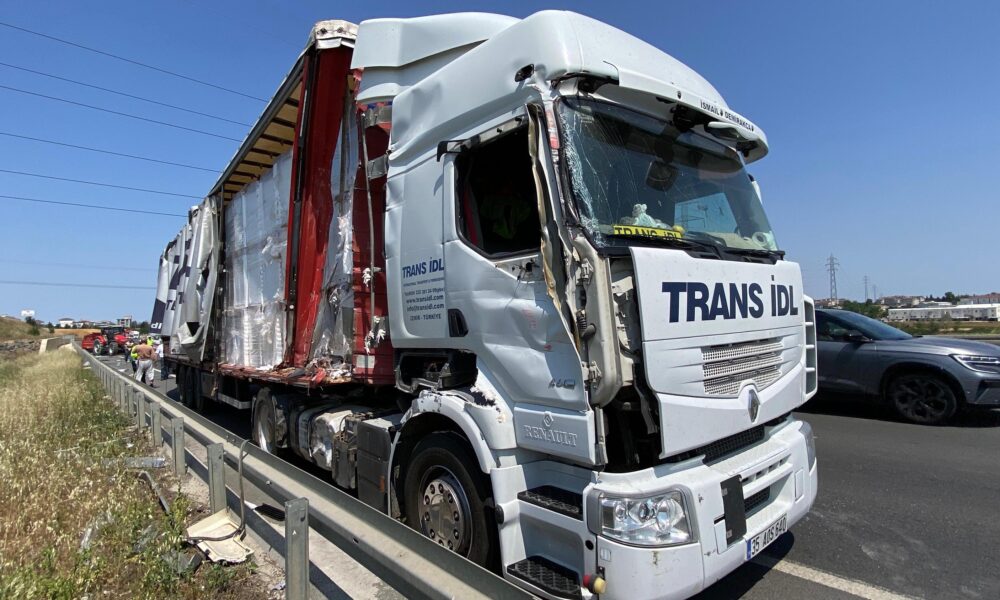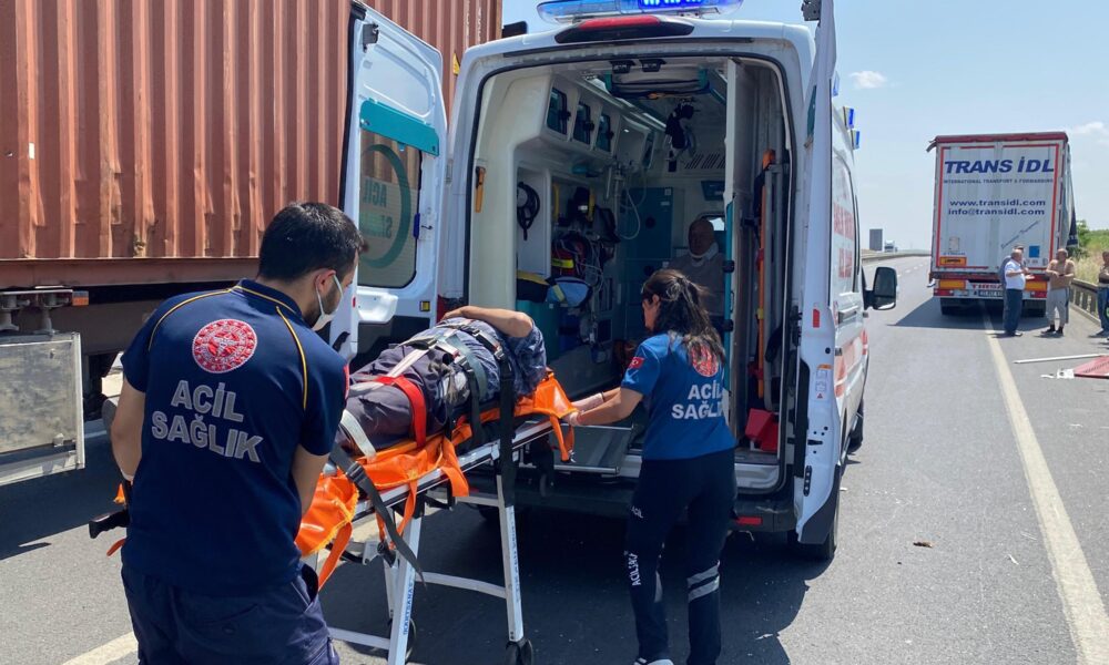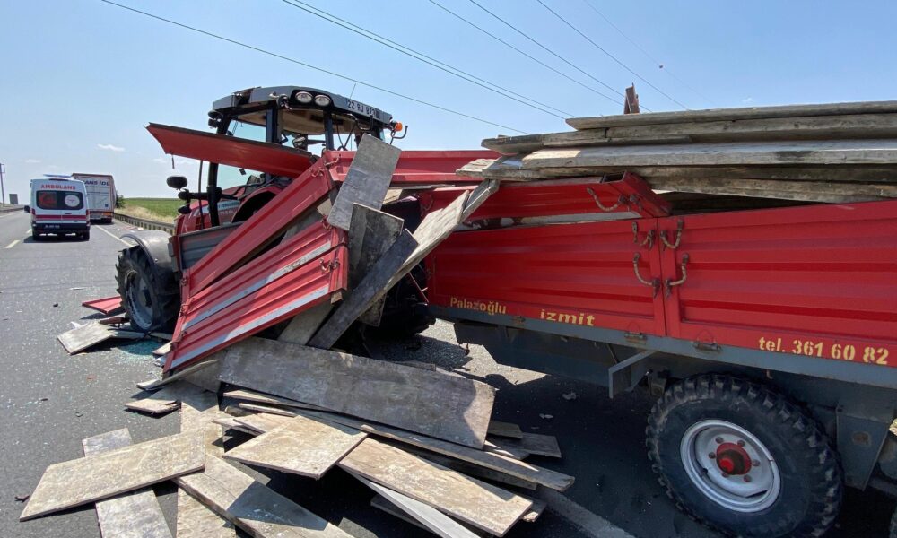 Kaza, saat 15.00 sıralarında Ergene-Tekirdağ kara yolu üzerinde meydana geldi. Rıza O.nun kullandığı 35 AOS 640 plakalı TIR, aynı yönde ilerleyen Akif Çapkın yönetimindeki 22 RJ 873 plakalı traktöre yandan çarptı. Çarpmanın şiddetiyle şarampole savrulan traktörden düşen sürücü Çapkın ile yanındaki Rıdvan Yılmaz yaralandı. İhbarla kaza yerine polis ve jandarma ekipleri sevk edildi. Yaralılar, ilk müdahalesinin ardından Çorlu Devlet Hastanesine kaldırılarak tedavi altına alındı. Rıza O. gözaltına alınırken, kaza ile ilgili inceleme başlatıldı.