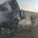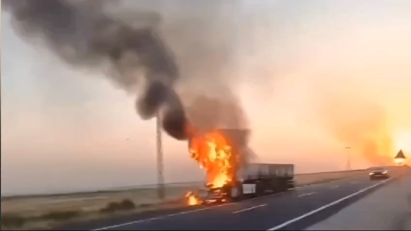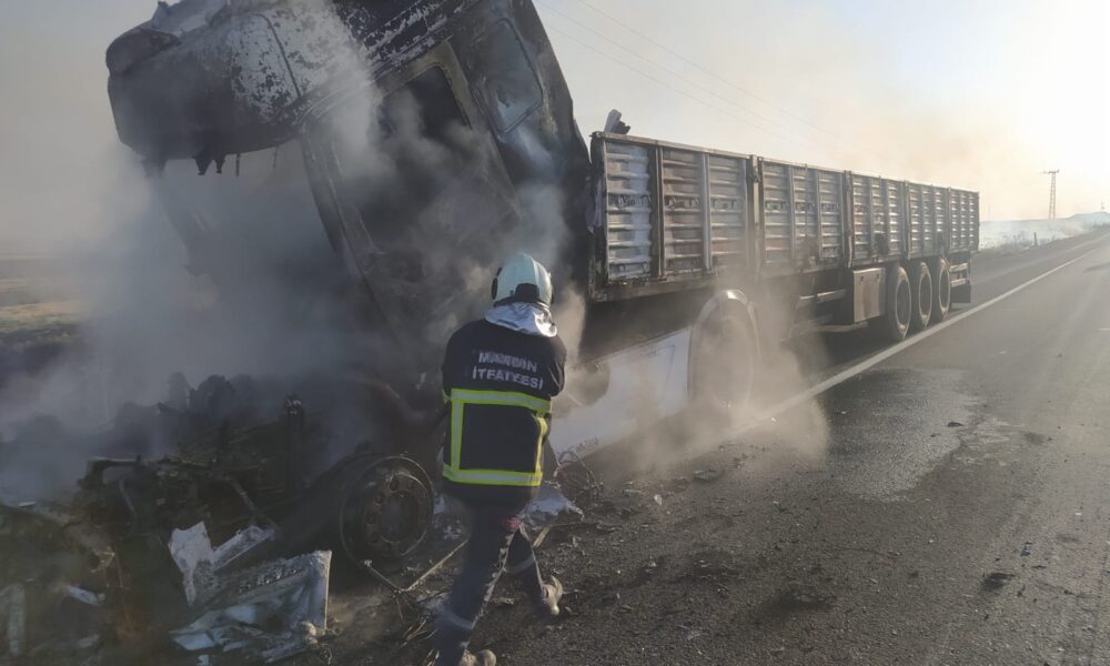 Kaza, sabah saatlerinde Nusaybin ile Cizre ilçeleri arasındaki uluslararası İpekyolu üzerinde meydana geldi. Çığır mevkisinde Ö.F.K. yönetimindeki 33 AOA 945 plakalı TIR, bir başka TIR’a arkadan çarptı. Kazadan yara almadan kurtulan Ö.F.K., kendini dışarı atarken TIR’ın kupası alev alarak yanmayan başladı. İhbarla bölgeye itfaiye, sağlık ve jandarma ekipleri sevk edildi. Ö.F.K., yol kenarında yanan aracını izledi. Ekiplerin müdahalesiyle yangın söndürüldü. O anlar, cep telefonu kamerasına yansırken, kazayla ilgili inceleme başlatıldı.