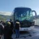 TIR’a arkadan çarpan yolcu otobüsünün sürücüsü sıkıştı; 38 yolcu kazayı yara almadan atlattı