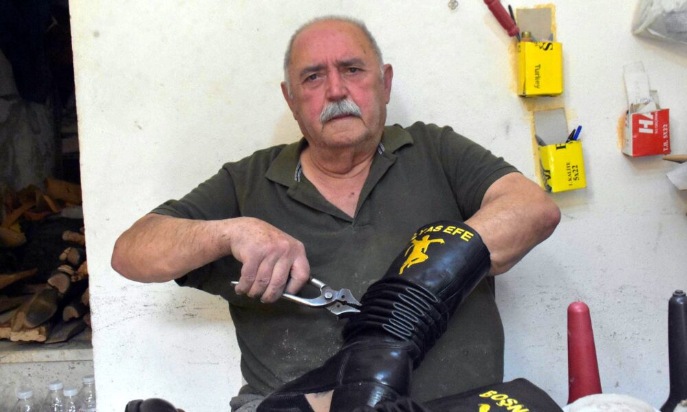 Tireli Hasan usta, 64 yıldır körüklü çizme yapıyor