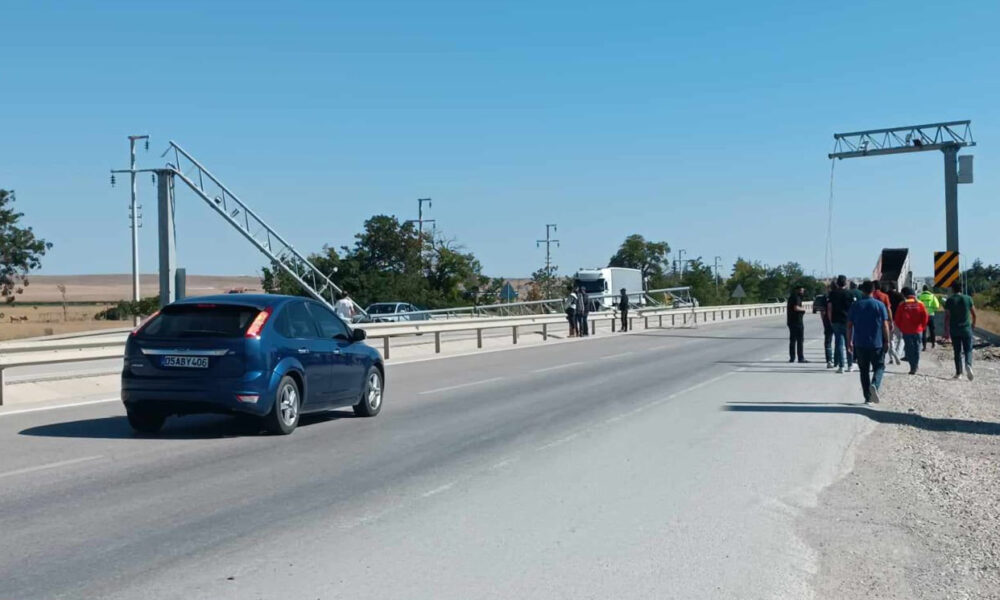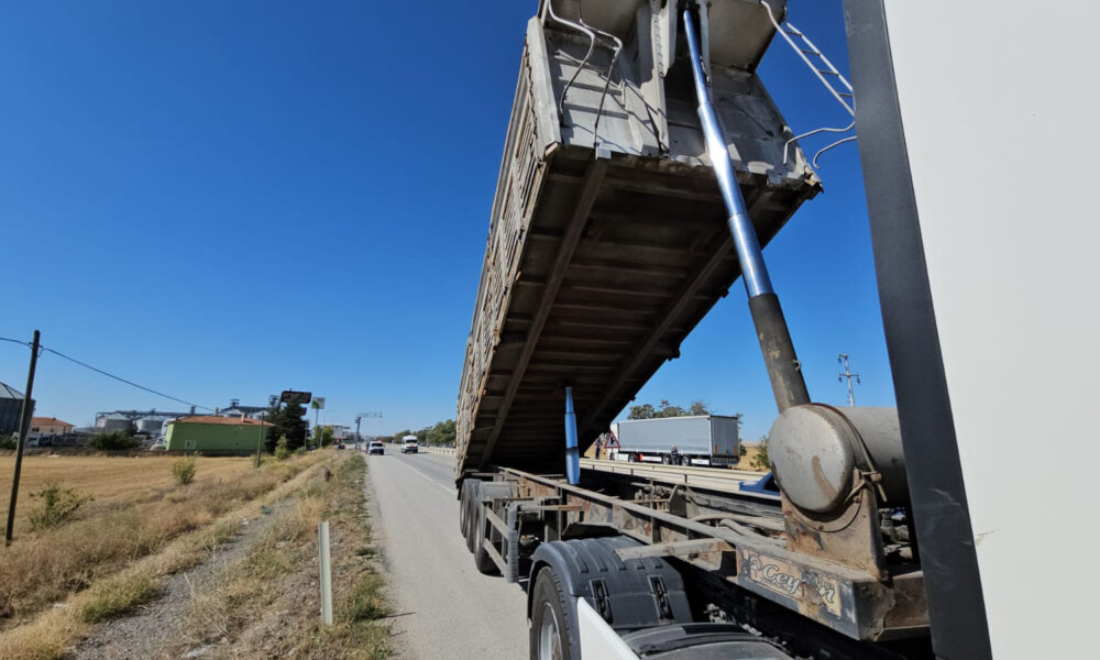 TIR’ın açık kalan dorsesi EDS’ye çarptı; o anlar kamerada