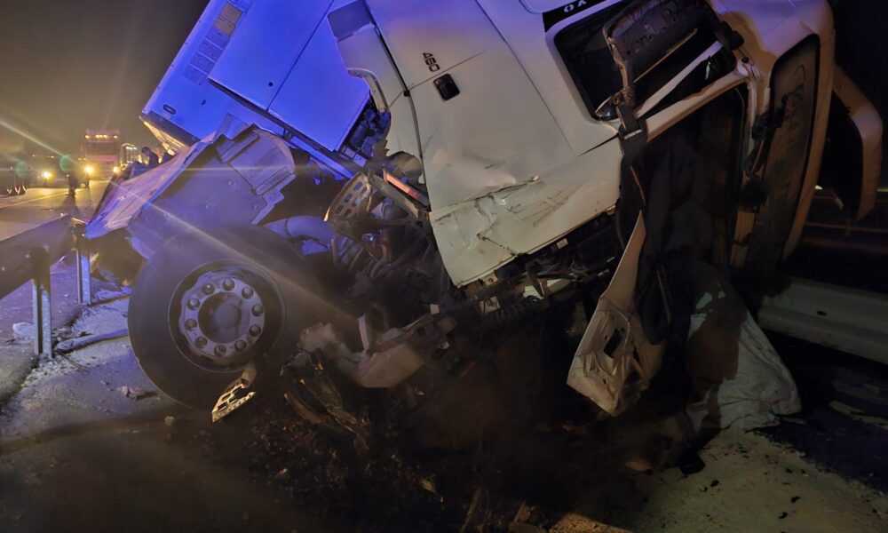 TIR’ın bariyerlere çarptığı kaza kamerada