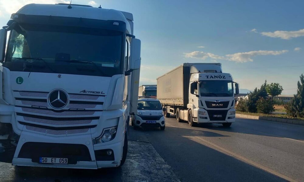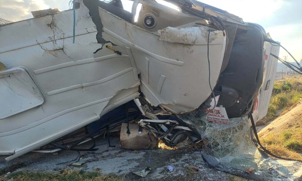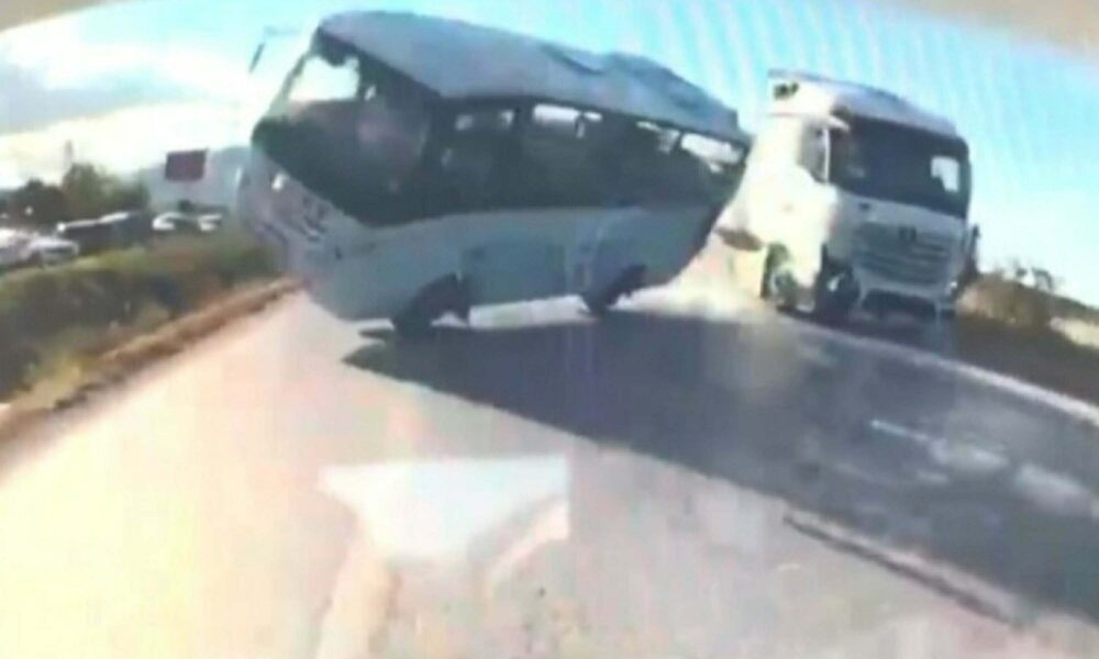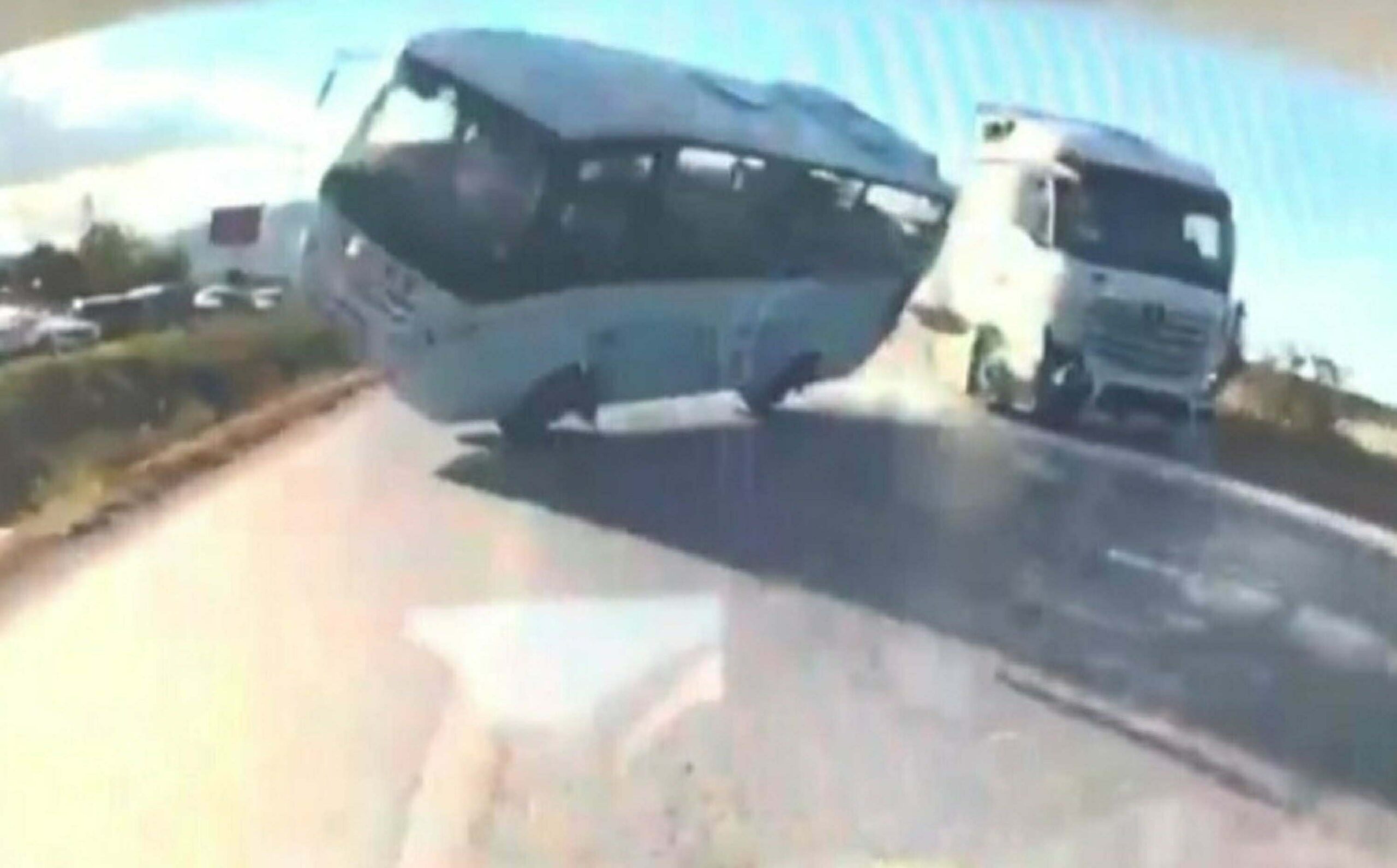 TIR’ın çarptığı servis midibüsü takla attı; kaza kamerada