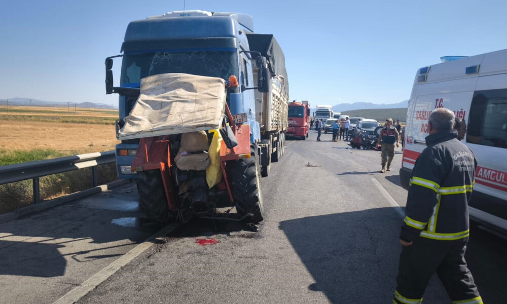 TIR’ın çarptığı traktör ikiye bölündü: 2 yaralı