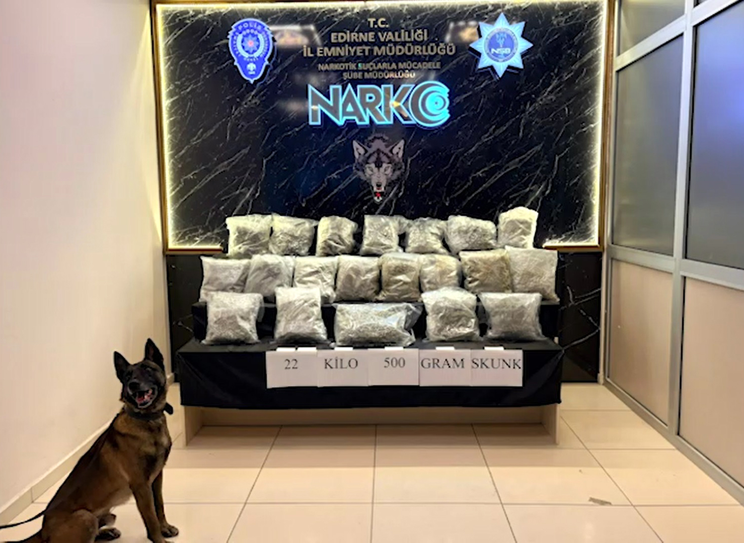 İl Emniyet Müdürlüğü Narkotik Suçlar Mücadele ve İstihbarat Şube Müdürlüğü ekiplerinin uluslararası uyuşturucu ticaretini önlemeye yönelik çalışmasında, yurt dışından gelen 1 TIRı takibe alındı. Bulgaristana açılan Hamzabeyli Sınır Kapısından giriş yapan TIR, durdurulup aramaya alındı. TIRda, narkotik köpeğiyle yapılan aramada stepne içerisinde 22 kilo 500 gram skunk ele geçirildi. TIRın şoförü gözaltına alındı.
