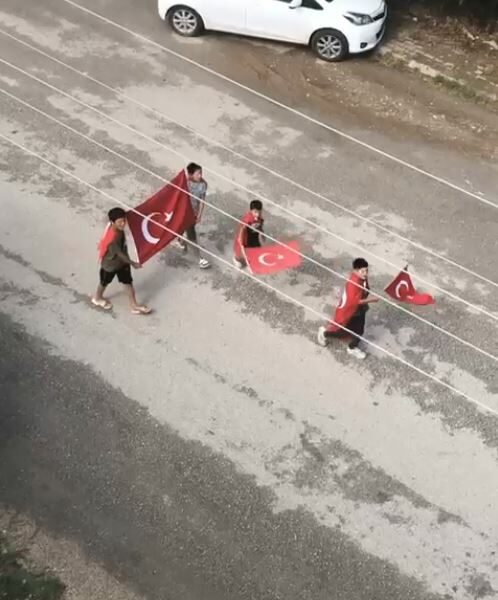 Tokat’ta 4 çocuk bayrak açıp, sokak sokak gezerek ‘Şehit’ türküsü söyledi; o anlar kamerada