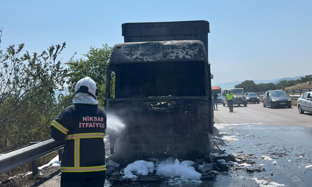 İrandan Kocaelinin Gebze ilçesine giden 76 DF 208 plakalı, Adem Servan yönetimindeki çinko yüklü TIRın motor bölümünde, saat 09.30 sıralarında D-100 kara yolu Kümbetli köyü yakınlarında yangın çıktı. İhbarla olay yerine Erbaa ve Niksar itfaiye ekipleri, sevk edildi. Yangın, itfaiye ekiplerinin müdahalesiyle söndürüldü. TIR kullanılamaz hale gelirken, taşınan yük de zarar gördü. Diğer yandan TIRın alev alev yandığı anlar, yoldan geçenler tarafından cep telefonuyla görüntülendi.