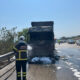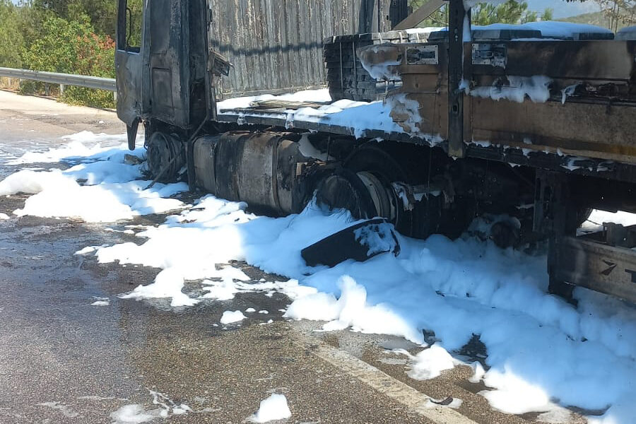 • Tokat’ın Niksar ilçesinde İran’dan Gebze’ye giden TIR alev alev yandı. İtfaiye ekipleri tarafından söndürülen TIR kullanılamaz hale gelirken taşıdığı yük de hasar gördü. Foto: Tokat, (DHA)