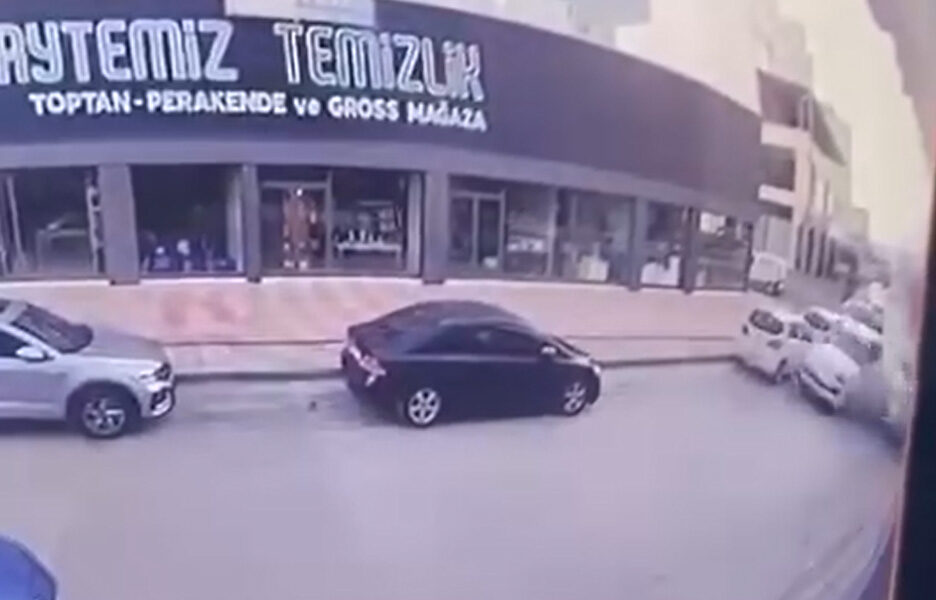 Kaza anı ise güvenlik bir iş yerinin güvenlik kamerasına yansıdı.