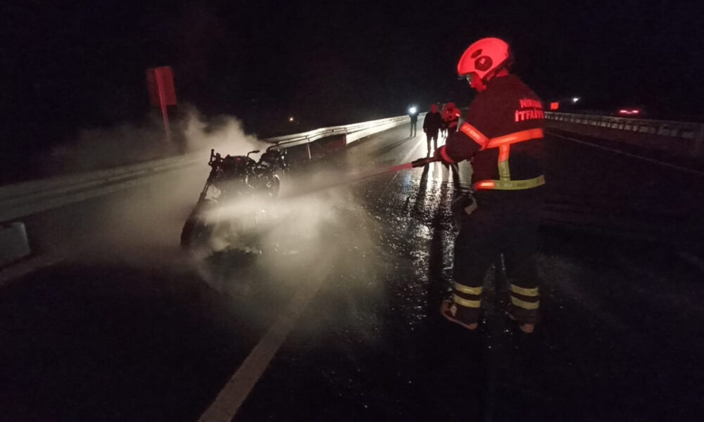 Olay, saat 20.00 sıralarında Niksar ilçe merkezinde meydana geldi. K.B. yönetimindeki 60 ABG 108 plakalı motosiklet, seyir halindeyken motor kısmından alev aldı. Sürücü, motosikleti emniyet şeridine çekerek durumu 112 Acil Çağrı Merkezi’ne bildirdi. İhbar üzerine olay yerine sevk edilen itfaiye ekibi, yanan motosikleti söndürdü. Yanan motosiklet, kullanılmaz hale geldi.