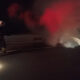 • Tokat'ın Niksar ilçesinde seyir halindeyken motor kısmı alev alan motosiklet, itfaiye ekipleri tarafından söndürüldü. Fotoğraf: Tokat, (DHA)