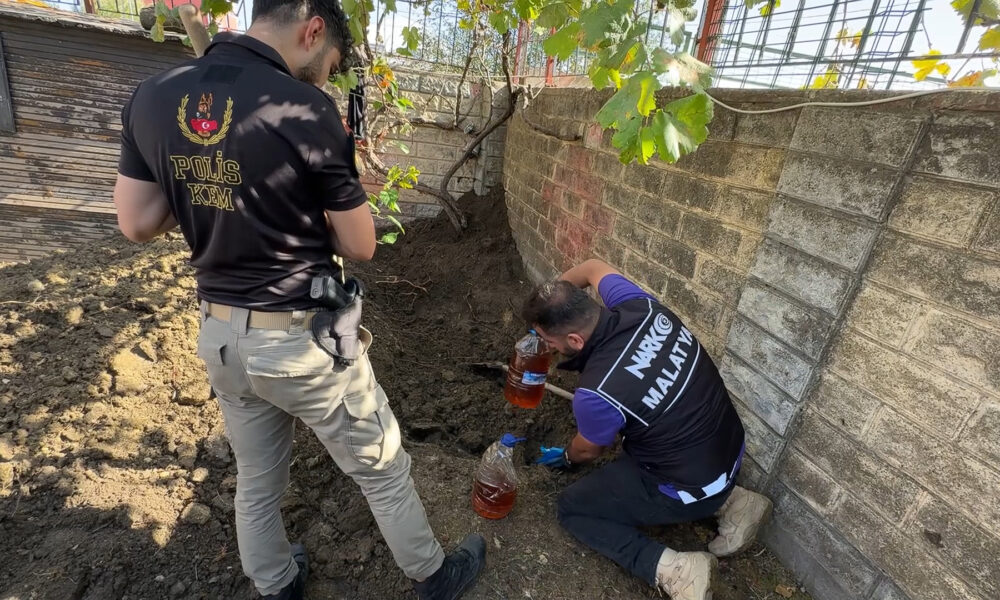 Malatya İl Emniyet Müdürlüğü ekipleri, işlediği bir suç nedeniyle cezaevinde bulunan S.M.M.G.nin İstanbuldaki adresinde uyuşturucu olduğu bilgisine ulaştı. Malatya merkezli soruşturmada, İstanbul İl Emniyet Müdürlüğü ile irtibata geçildi. S.M.M.G.nin Büyükçekmecedeki adresinde arama yapıldı. Evde herhangi bir suç unsuru bulamayan ekipler, bahçede yaptığı kazıda toprağa gömülü, piyasa değeri 10 milyon TL olan 7 kilo 450 gram sıvı metamfetamin ele geçirdi. Uyuşturucuya el konulurken, olayla ilgili soruşturmanın sürdüğü belirtildi.