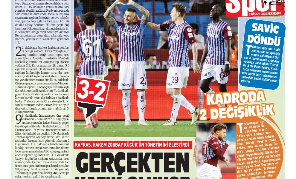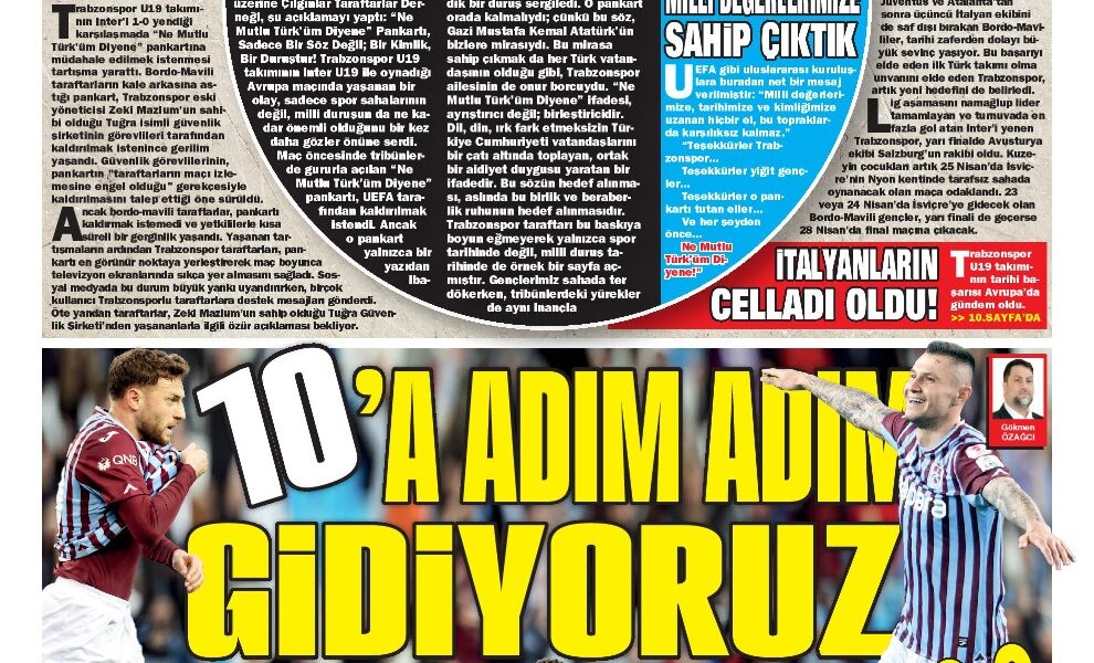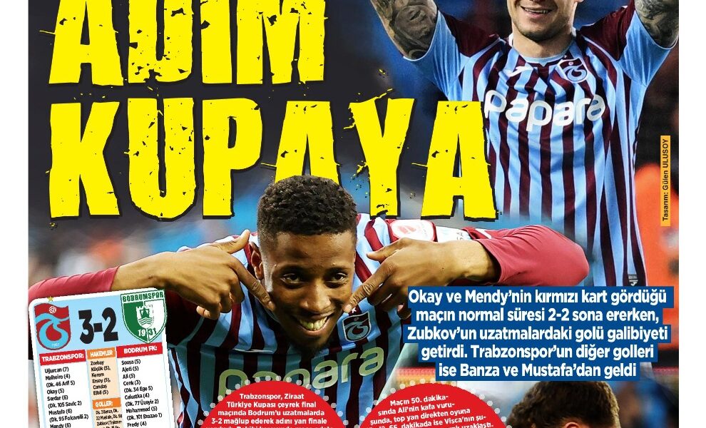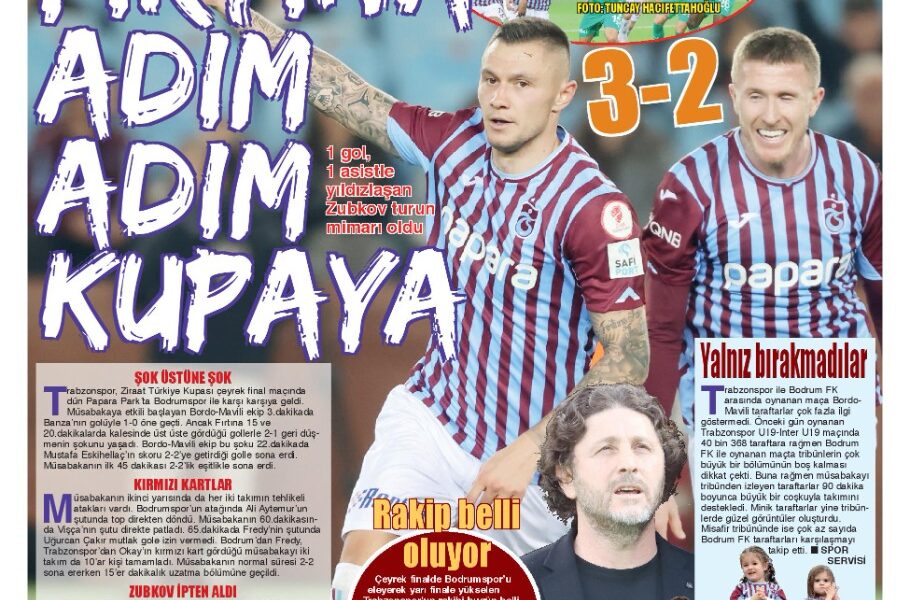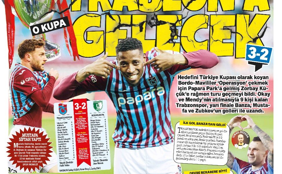 Öte yandan Trabzon’da yayın yapan yerel gazeteler de Bordo-mavili takımın Türkiye Kupası’nda yarı finale kalmasını farklı başlıklarla manşetlerine taşıdı.
