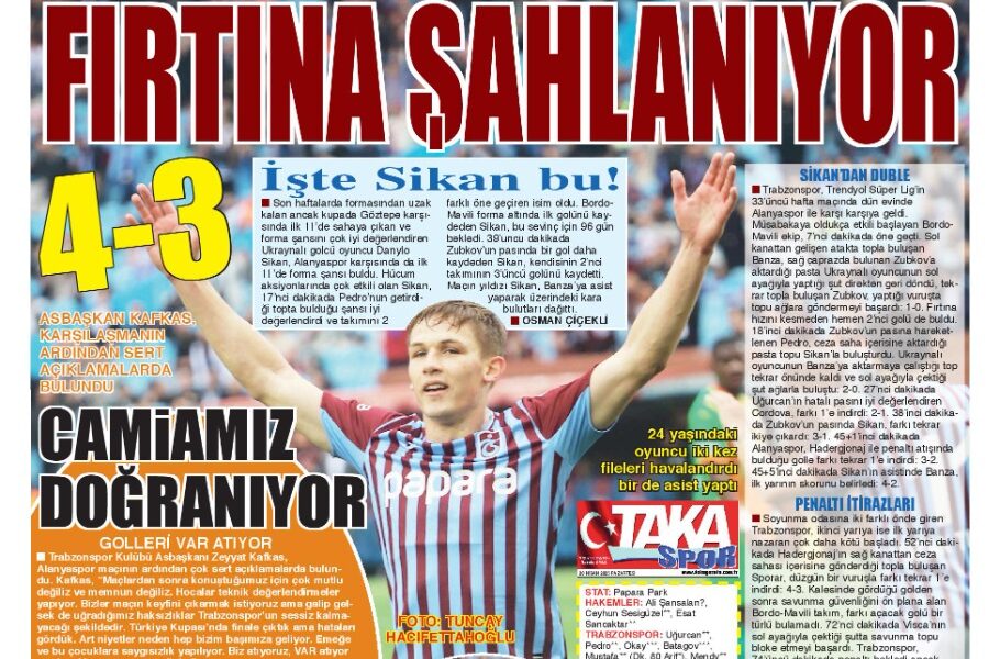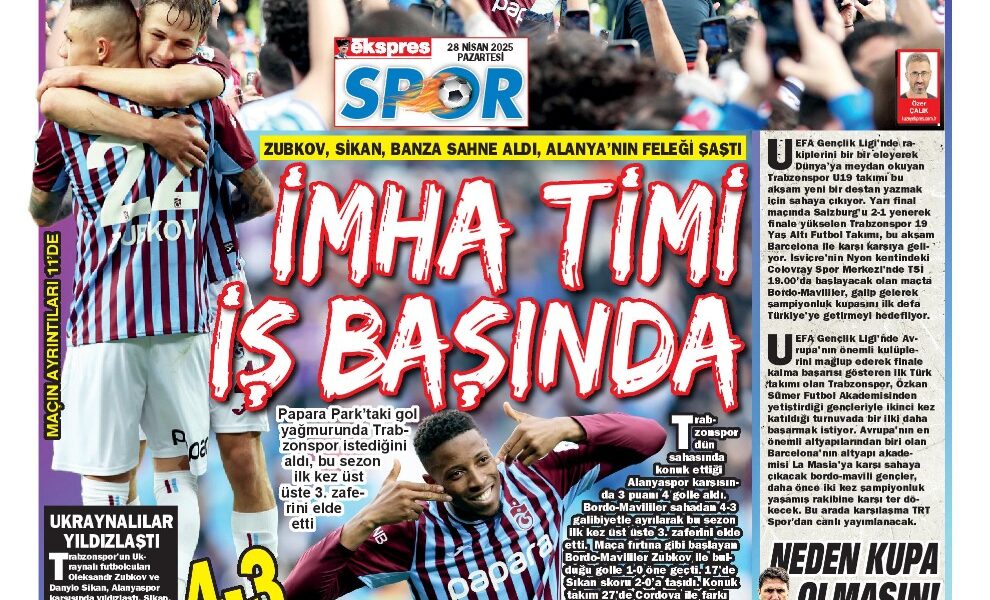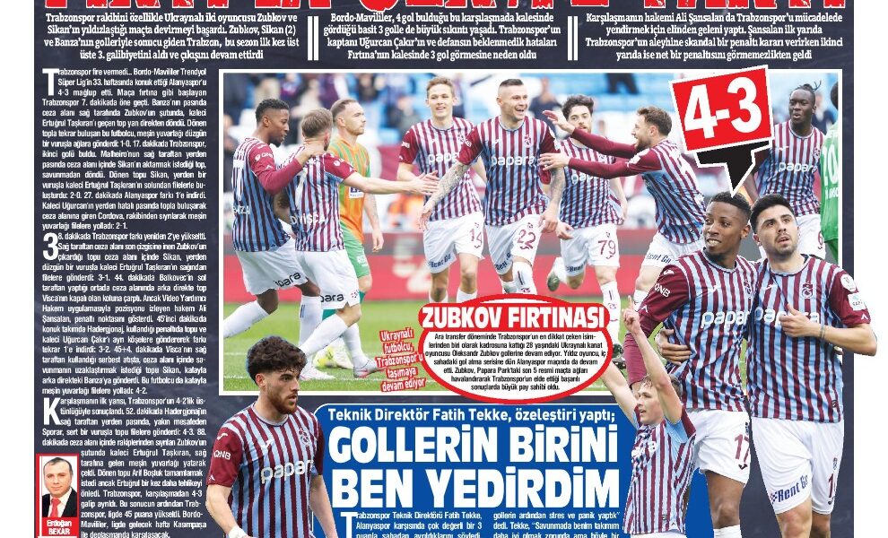 Öte yandan Trabzon’da yayın yapan yerel gazeteler de bordo-mavili takımın Alanyaspor karşısında aldığı galibiyeti farklı başlıklarla manşetlerine taşıdı.