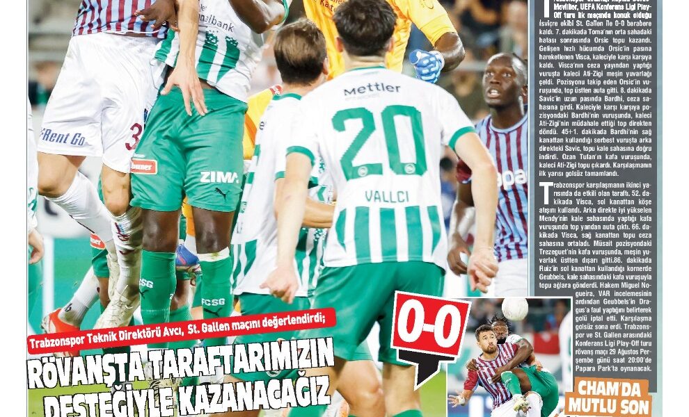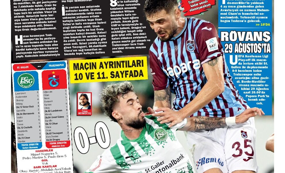 Trabzon’da yayın yapan yerel gazeteler ise bordo-mavili takımın St. Gallen ile berabere kaldığı maçı manşetlerine farklı başlıklarla taşıdı.